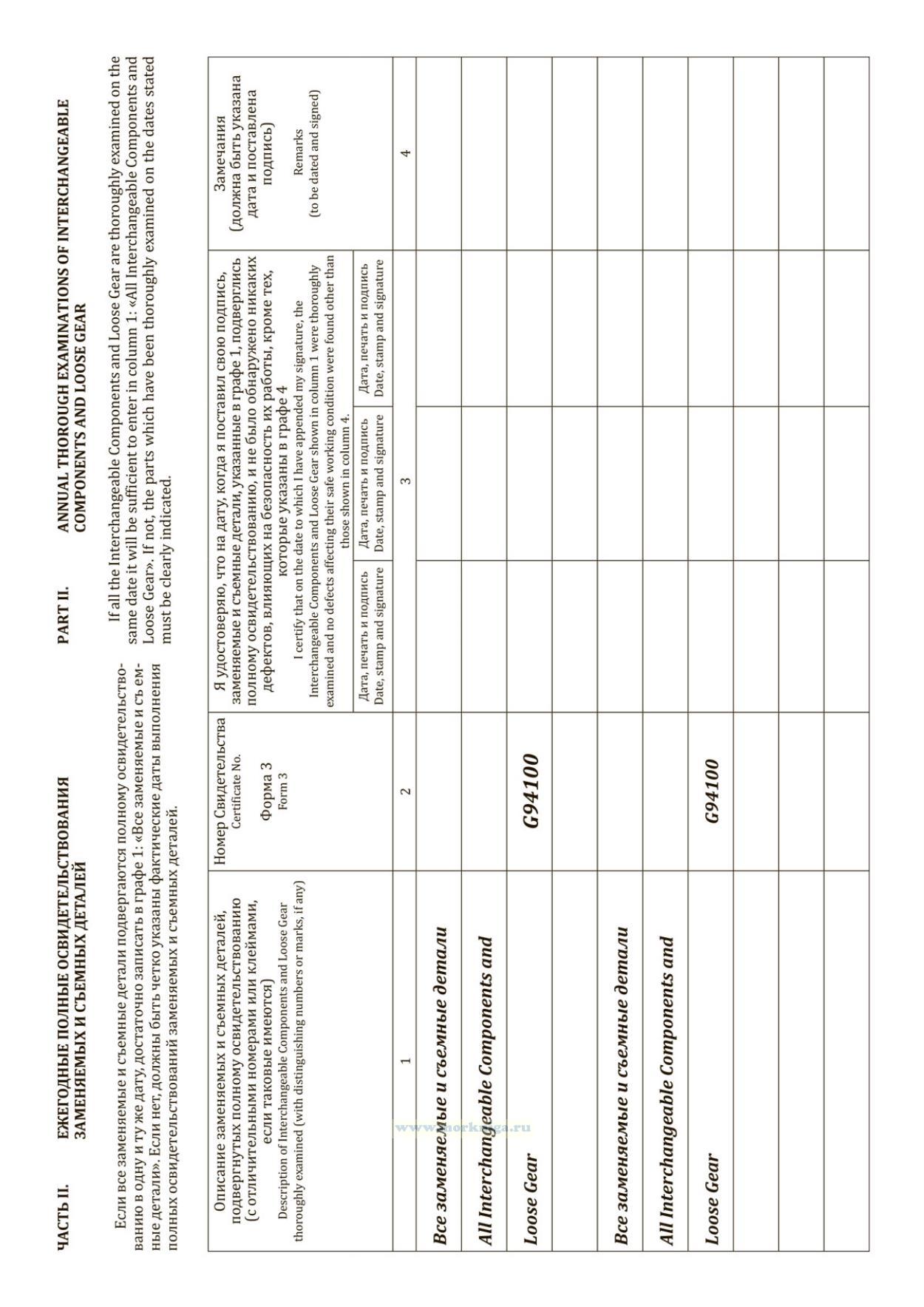 Часть II. Ежегодные полные освидетельствования заменяемых и съемных деталей / Part II. Annual thorough examinations of interchangeable components and loose gear