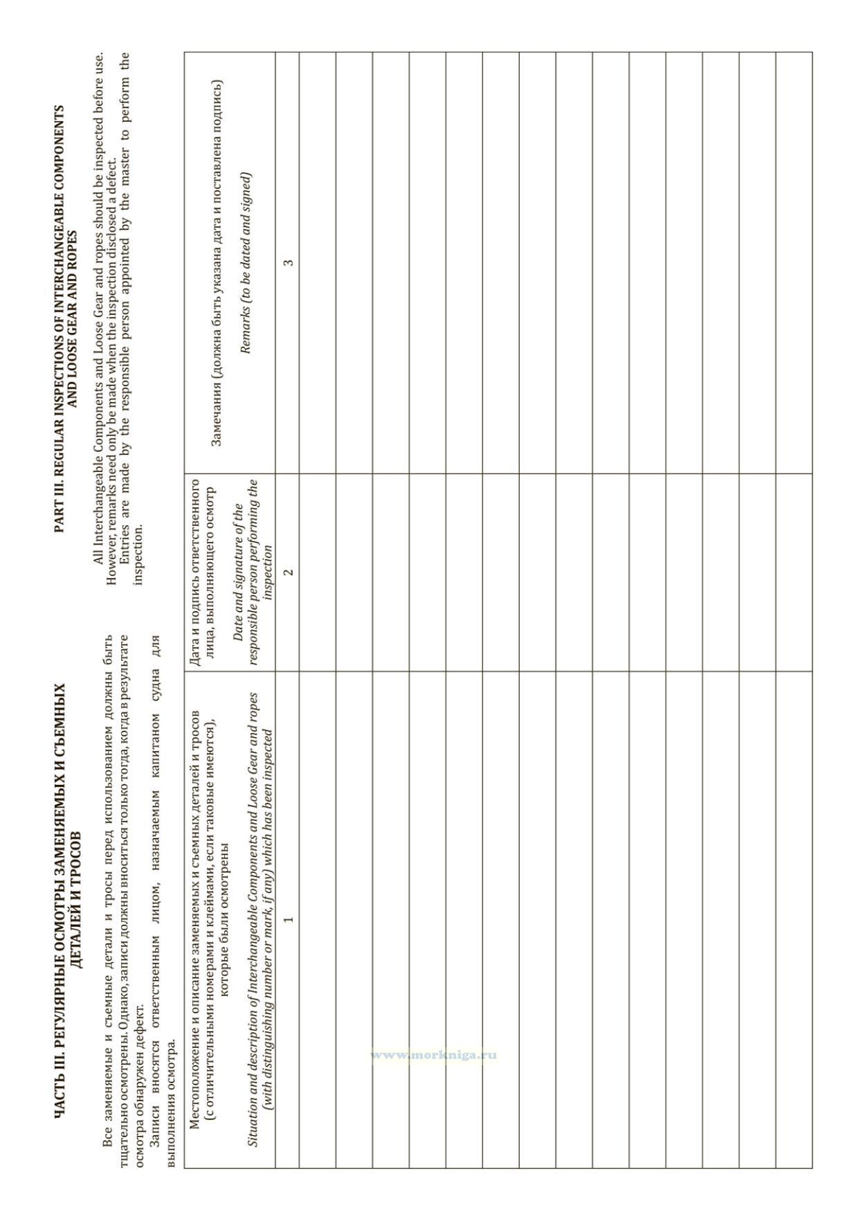 Часть III. Регуляторные осмотры заменяемых и съемных деталей и тросов / Part III. Regular inspections of interchangeable components and loose gear and ropes