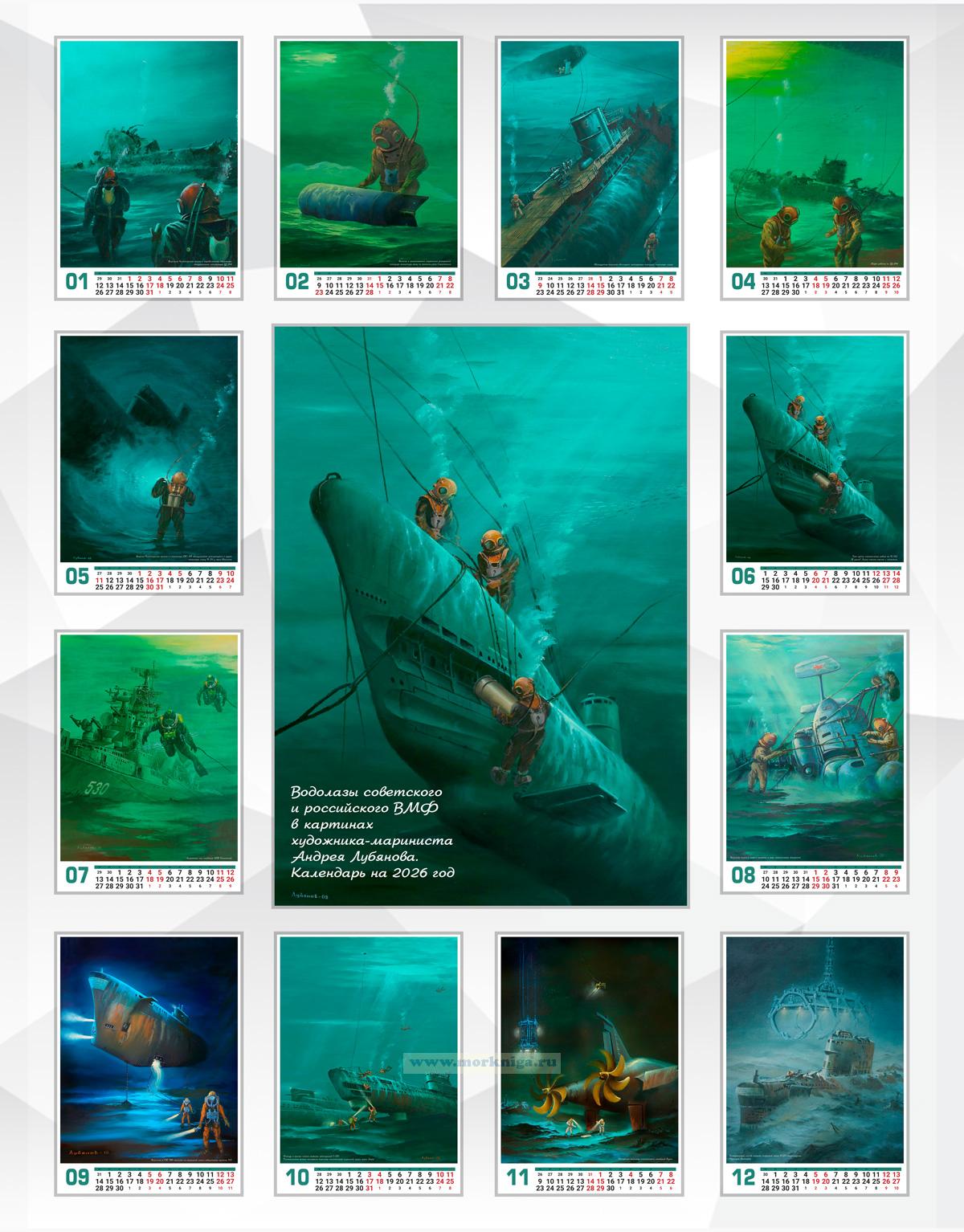 Набор карманных календариков на 2026 год "Водолазы советского и российского ВМФ в картинах художника-мариниста Андрея Лубянова", 10х7 см (12 шт) (200 руб.)