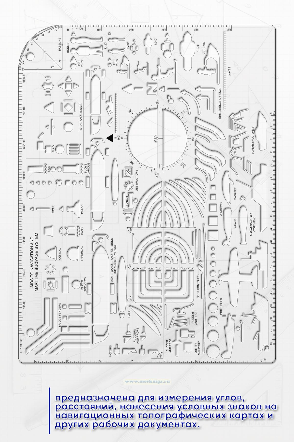 Линейка предназначена для измерения углов, расстояний, нанесения условных знаков на навигационных топографических картах и других рабочих документах.