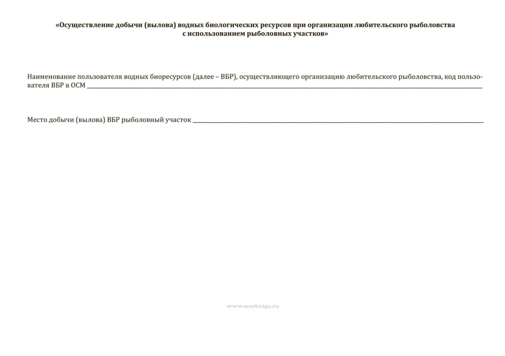 При осуществлении добычи (вылова) водных биоресурсов при организации любительского рыболовства с использованием рыболовных участков рыболовный журнал должен включать раздел "Осуществление добычи (вылова) водных биологических ресурсов при организации любительского рыболовства с использованием рыболовных участков".