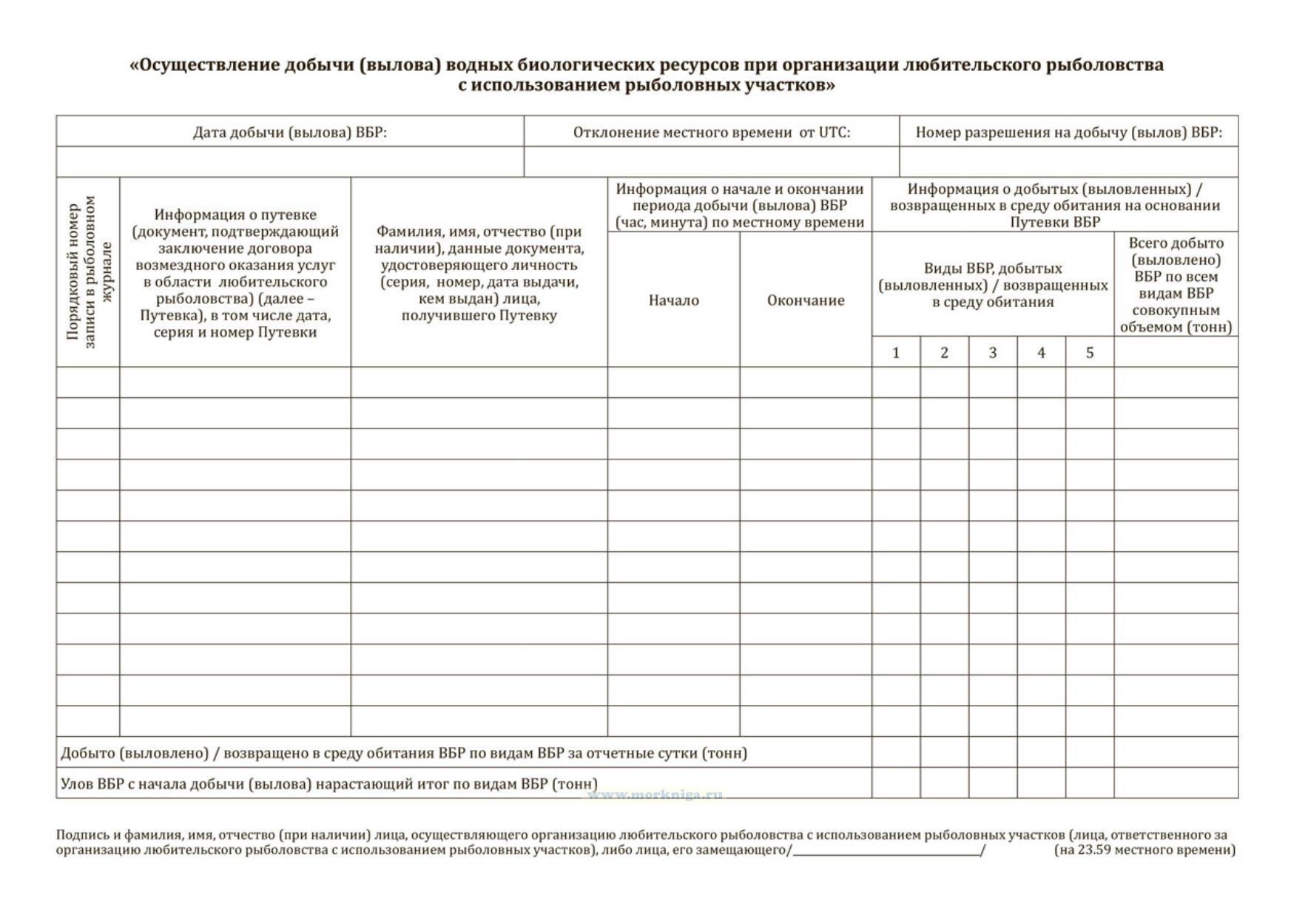 Лица, осуществляющие промышленное рыболовство, прибрежное рыболовство, рыболовство в научно-исследовательских и контрольных целях, рыболовство в учебных и культурно-просветительских целях, рыболовство в целях аквакультуры (рыбоводства), а также рыболовство в целях обеспечения ведения традиционного образа жизни и осуществления традиционной хозяйственной деятельности коренных малочисленных народов Севера, Сибири и Дальнего Востока Российской Федерации с использованием рыболовных участков, и лица, осуществляющие организацию любительского рыболовства с использованием рыболовных участков, обязаны соблюдать требования к содержанию и формам рыболовного журнала