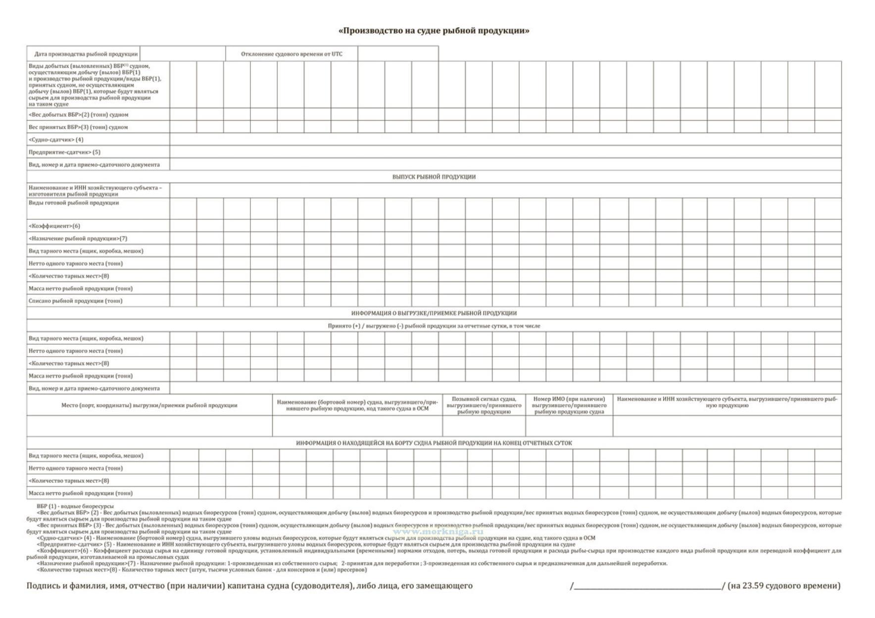 При осуществлении на судах производства рыбной продукции рыболовный журнал должен включать раздел "Производство на судне рыбной продукции".