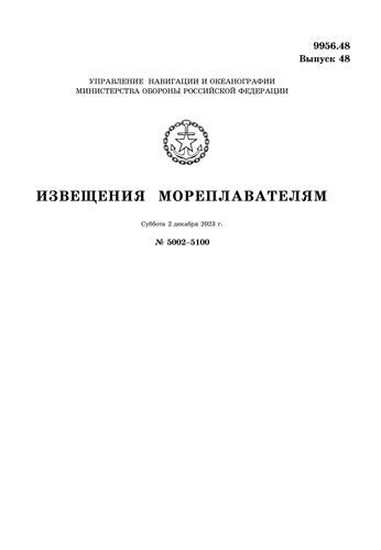 Извещения мореплавателям. Выпуск 48. № 5002-5100 (от 2 декабря 2023 г.) Адм. 9956.48
