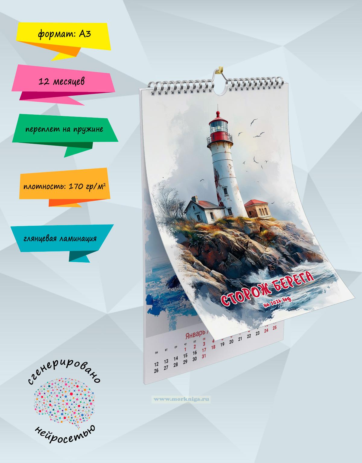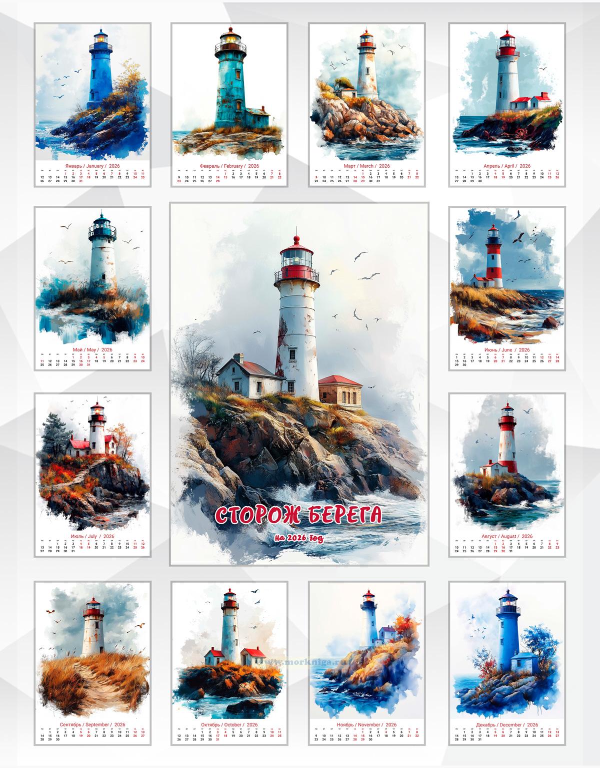 Календарь содержит изображения величественных маяков в акварельной технике, сгенерированные с помощью нейросети. Календарь будет отличным подарком для ваших родных, друзей, знакомых, коллег или даже для себя.