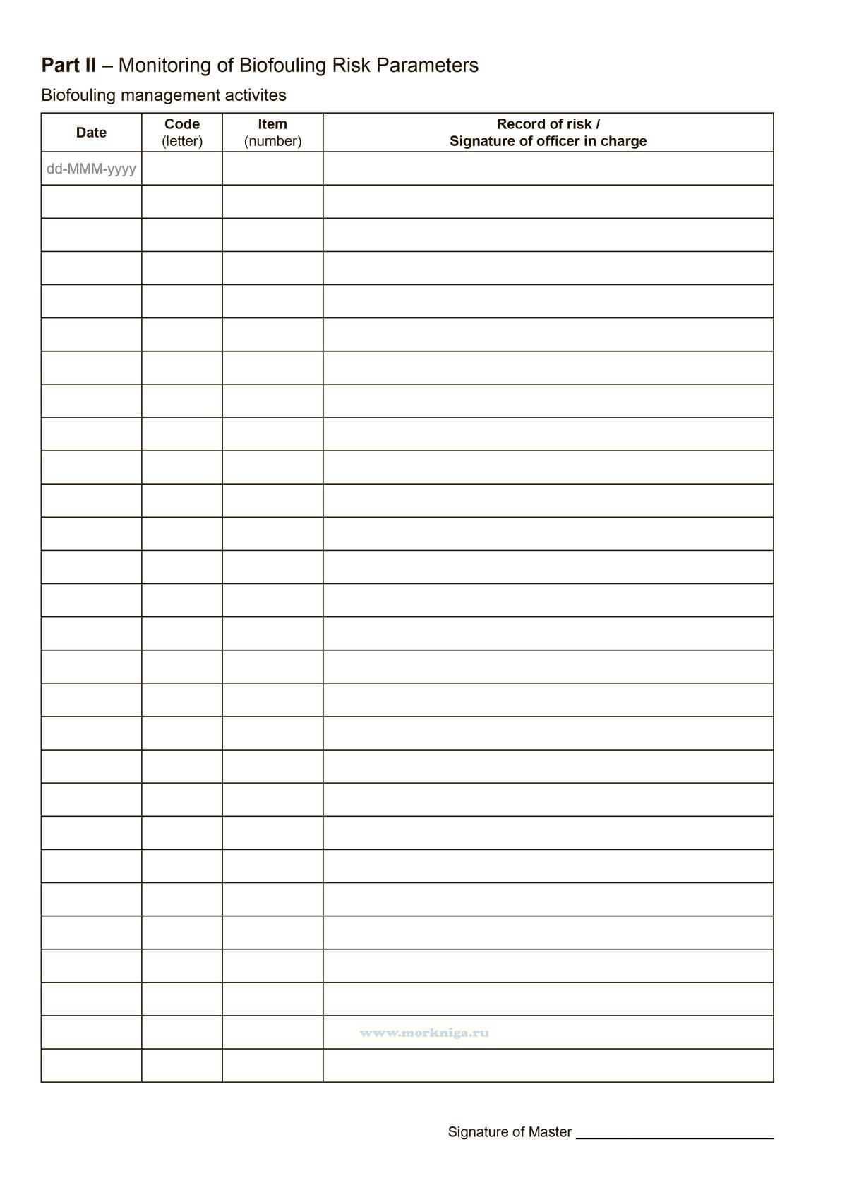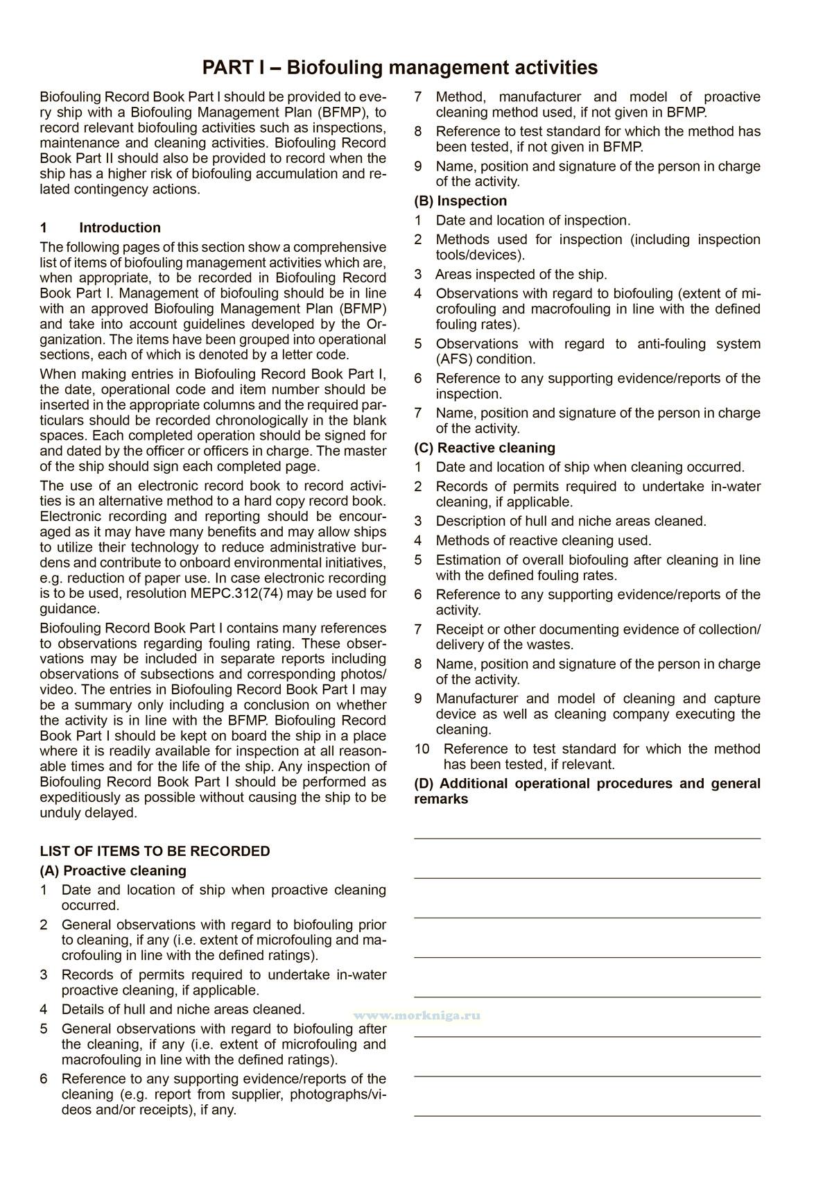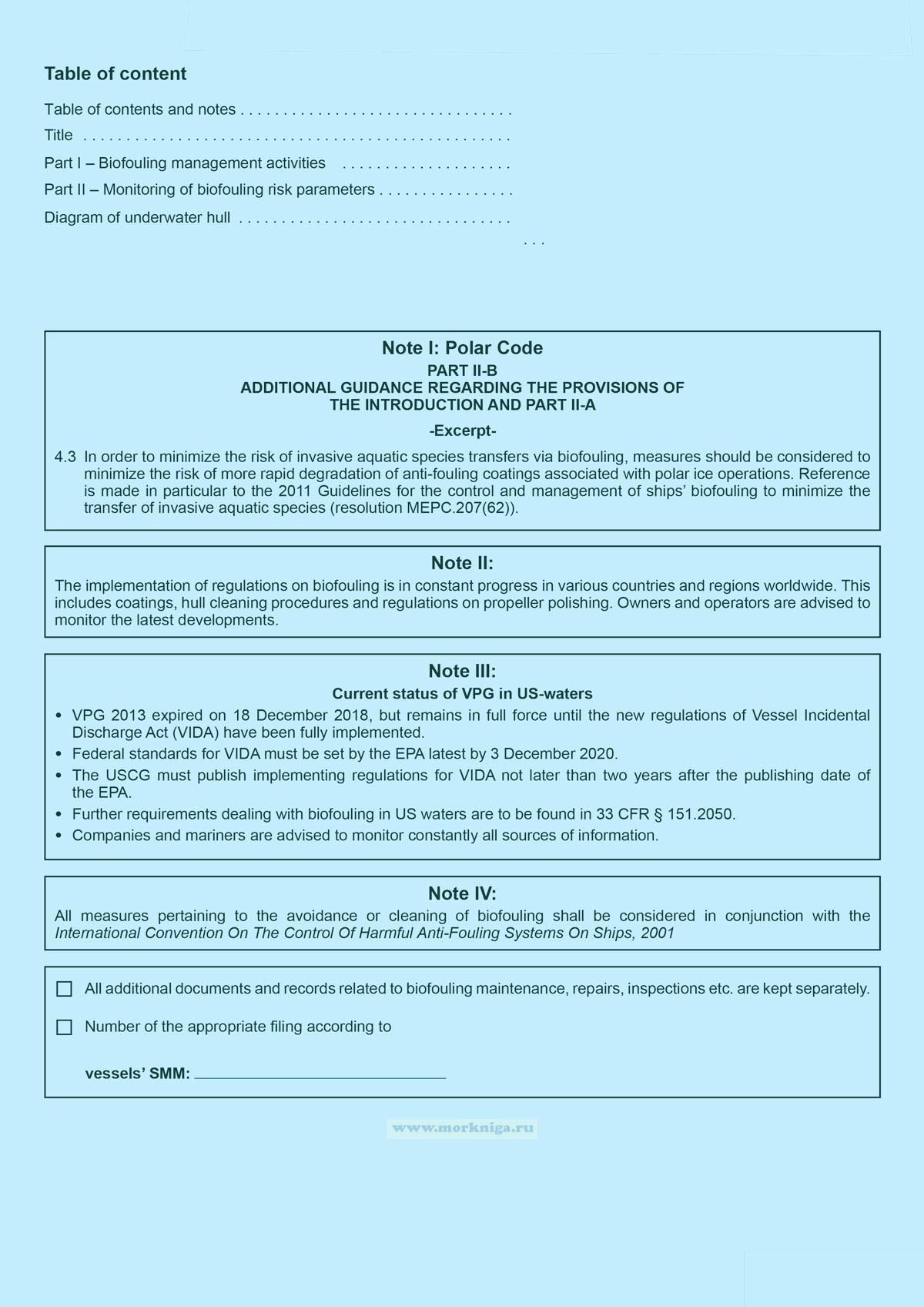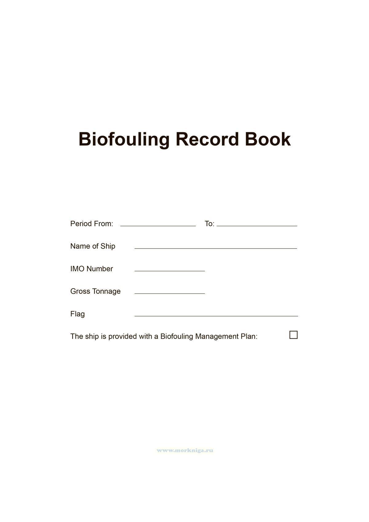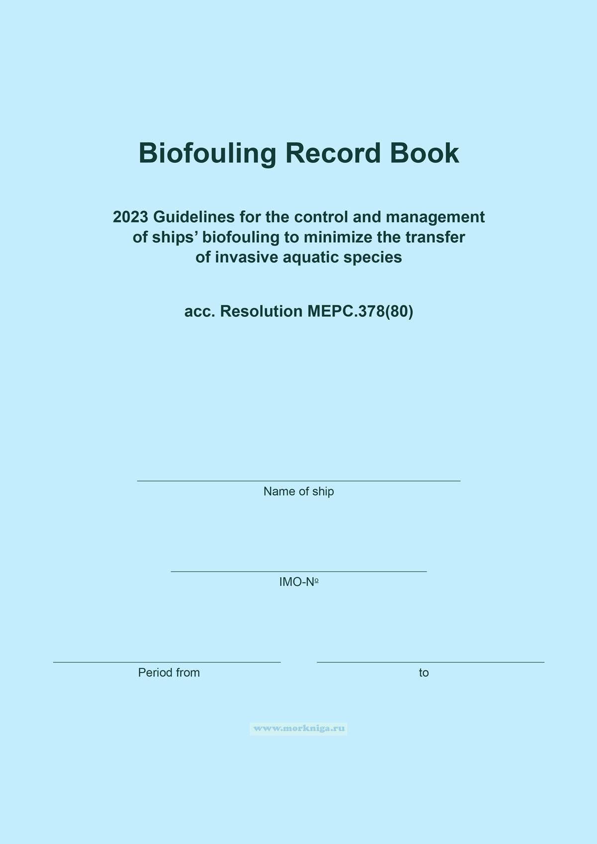 The record book is made in accordance with 2023 Guidelines for the control and management of ships’ biofouling to minimize the transfer of invasive aquatic species, MEPC.378(80) .