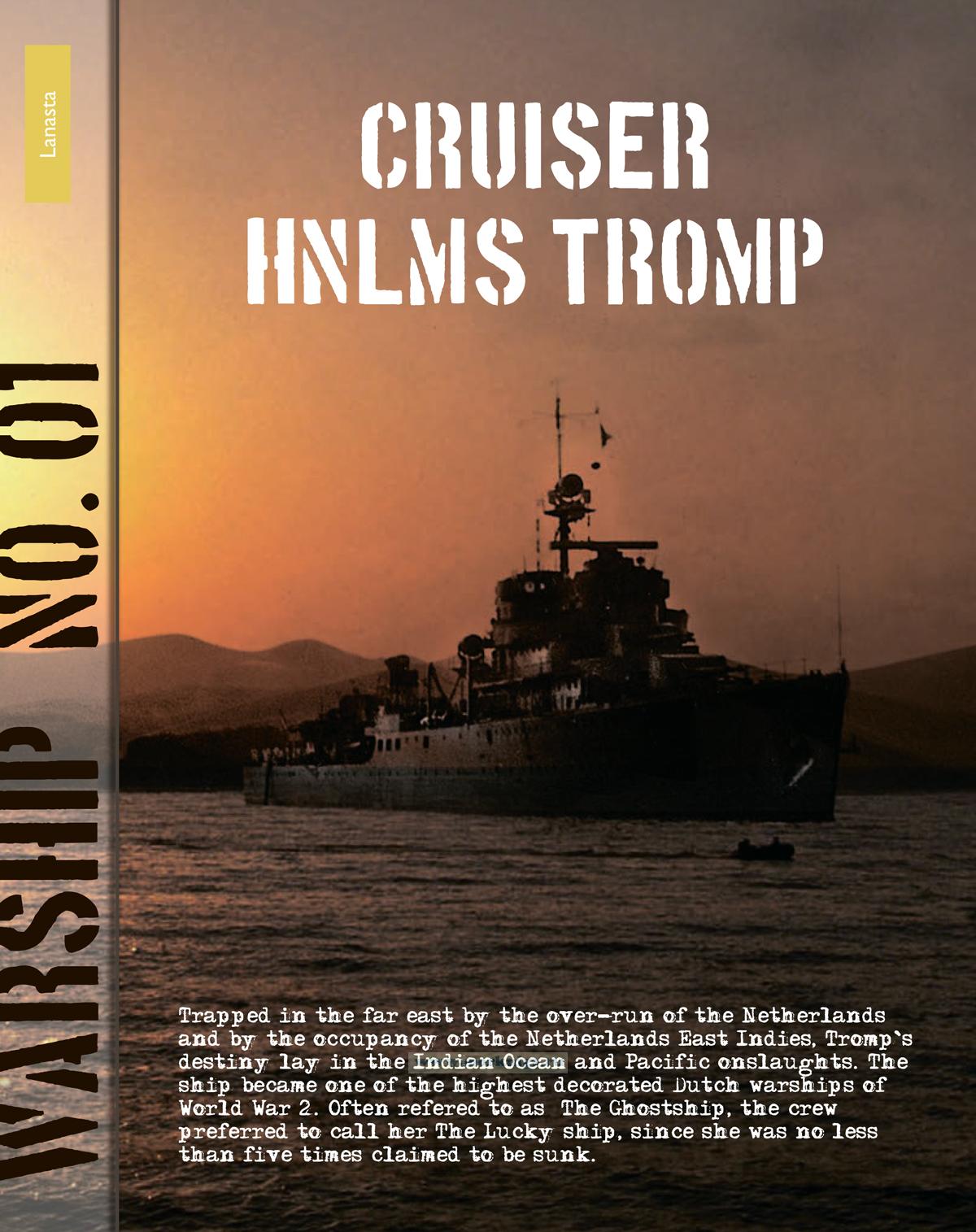 Trapped in the far east by the over-run of the Netherlandsand by the occupancy of the Netherlands East Indies, Tromp`s destiny lay in the Indian Ocean and Pacific onslaughts. The ship became one of the highest decorated Dutch warships of World War 2. Often refered to as ‘The Ghostship, the crew preferred to call her The Lucky ship, since she was no less than five times claimed to be sunk.