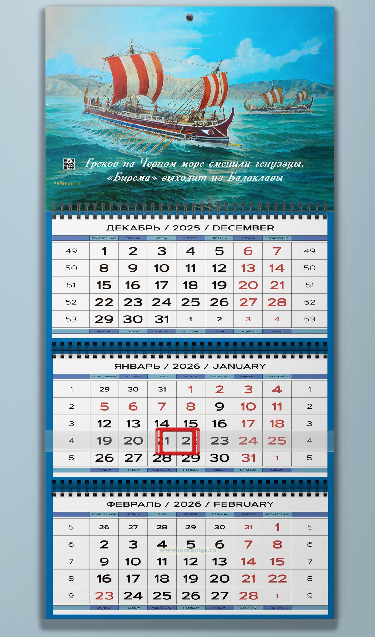Календарь квартальный "Первыми мореплавателями на Черном море были греки" на 2026 год (730 руб.)