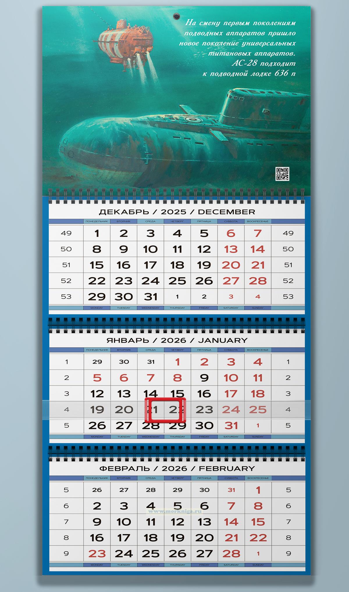 Календарь квартальный "Спасительный аппарат типа СПС осуществляет стыковку к комингс-площадке подводной лодки 613 проекта" на 2026 год (730 руб.)
