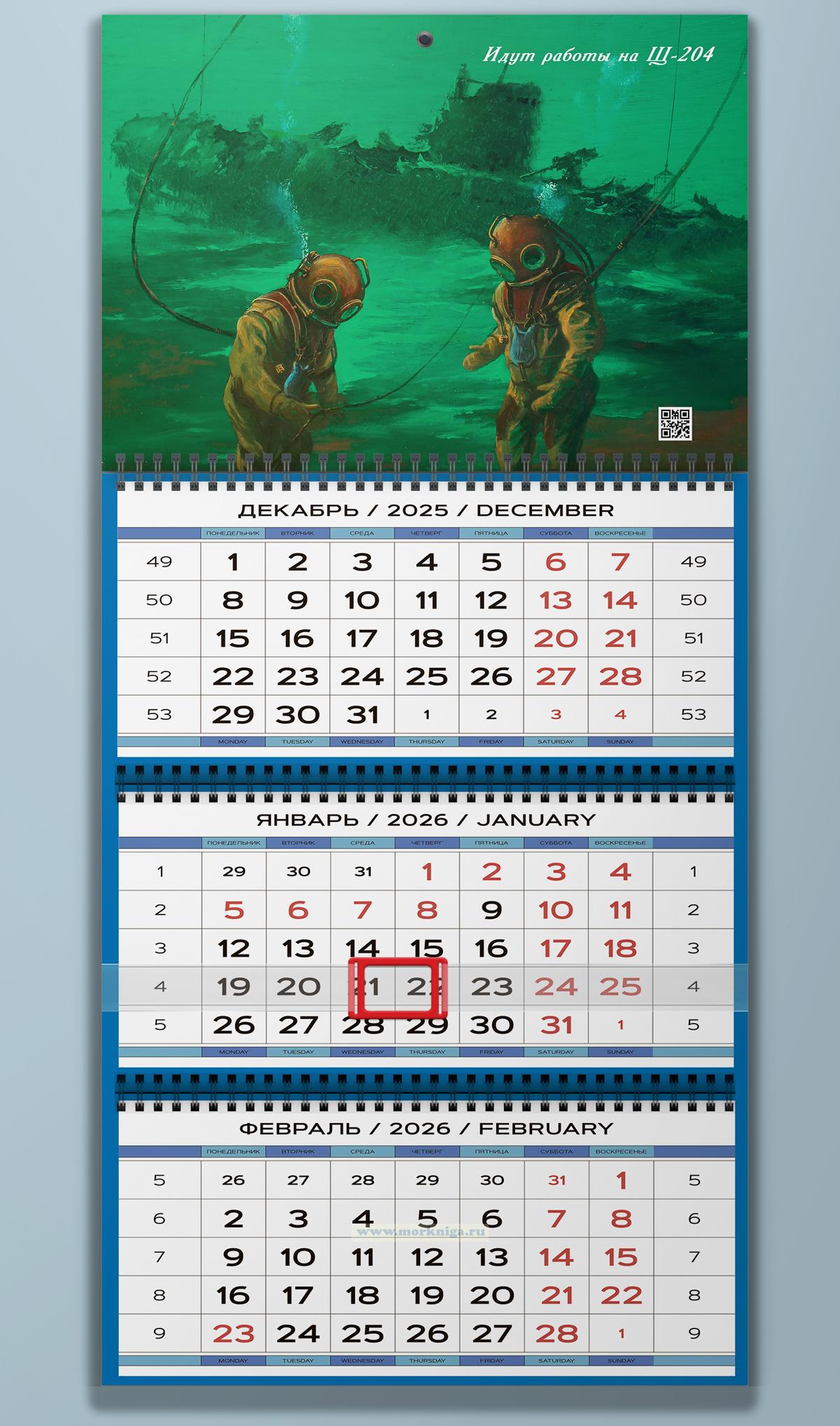 Календарь квартальный "Российские водолазы осматривают погибший Курск" на 2026 год (730 руб.)