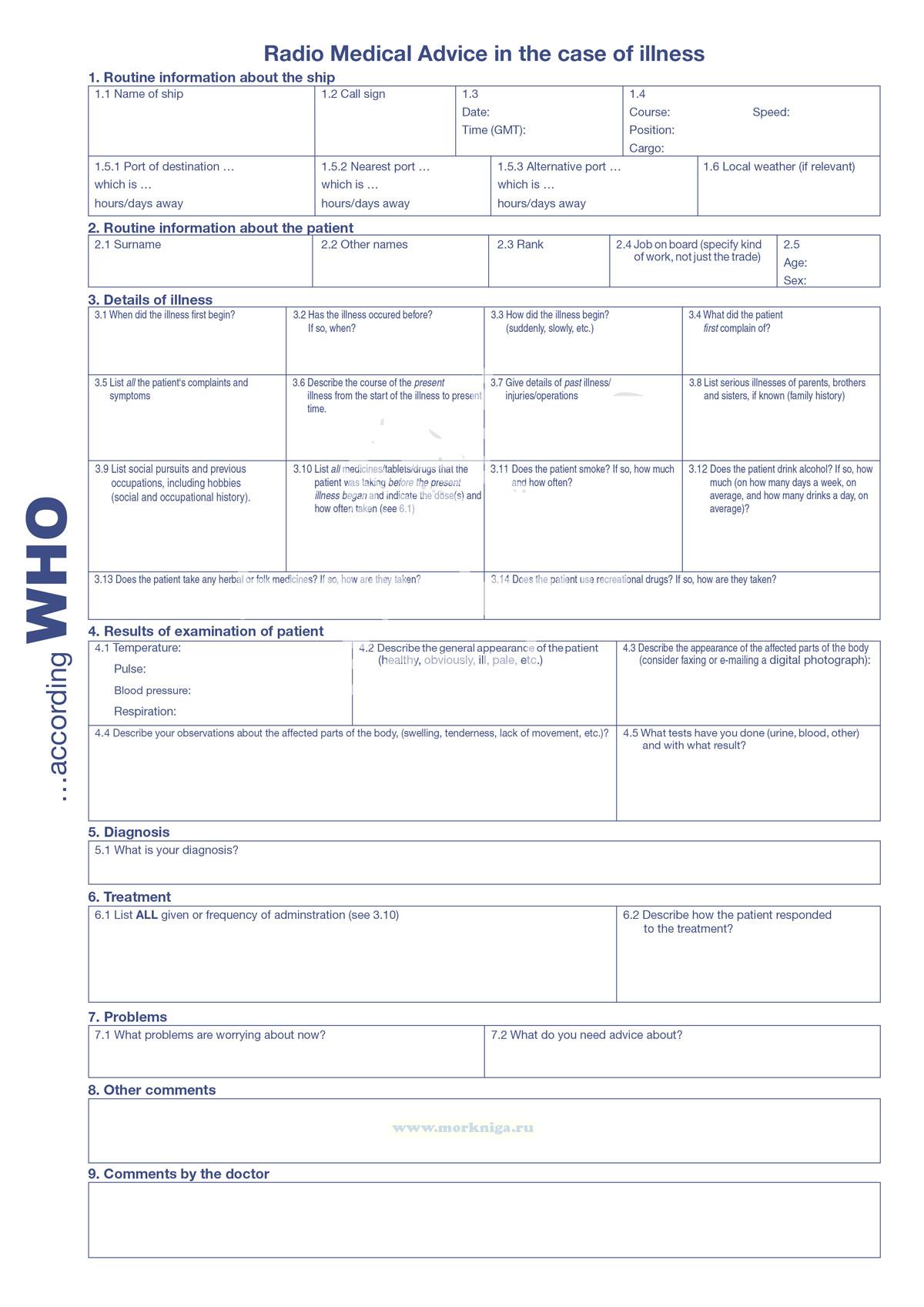 Radio medical advice is available free of charge to provide support in cases where an individual suffers either illness or an accident at sea. The advice is intended to supplement the first aid training of the ship’s crew and the written guidance that is available, such as the Ship’s Captain’s Medical Guide.