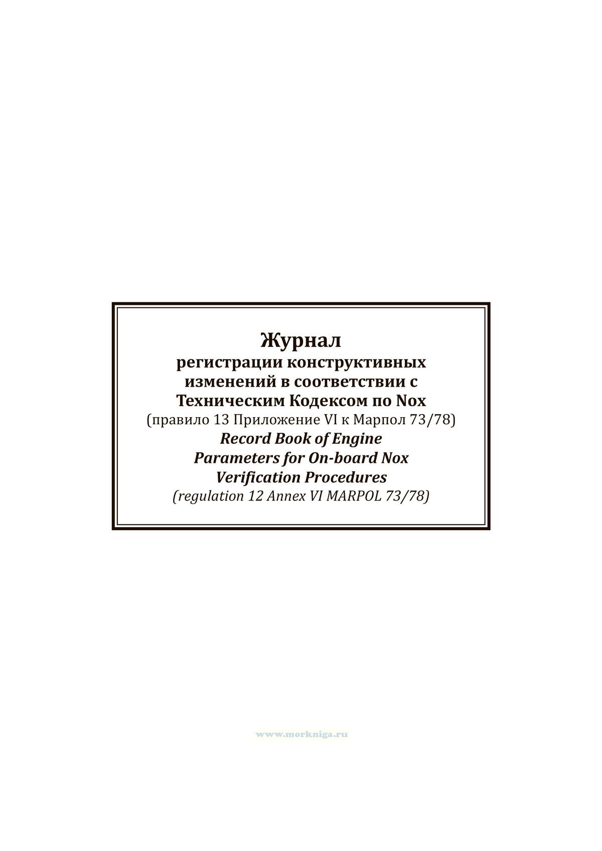 Журнал регистрации конструктивных изменений в соответствии с Техническим Кодексом по Nox (правило 13 Приложение VI к Марпол 73/78)/Record Book of Engine Parameters for On-board Nox Verification Procedures (regulation 12 Annex VI MARPOL 73/78)