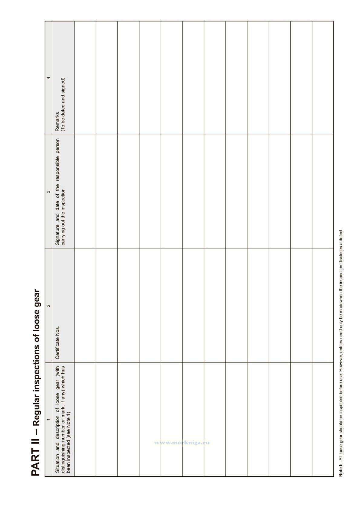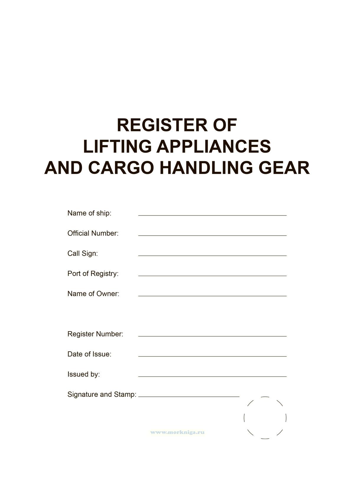Register of Lifting Appliances and Cargo Handling Gear consists of sections: