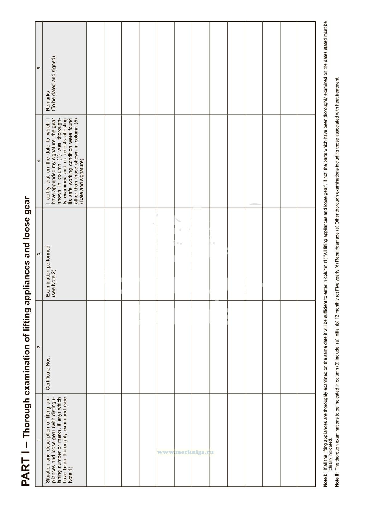 Upon satisfactory completion of the procedures indicated above the competent person shall complete and issue the Register of Lifting Appliances and attach the appropriate Certificates. An entry shall be made in Part I of the Register.