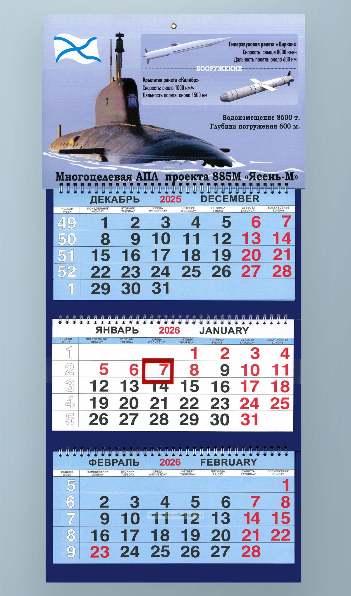 Календарь квартальный "Военно-Морской Флот" на 2026 год (ТРПКСН пр. 941) (400 руб.)