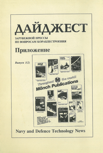 Выпуск №1(2) приложения к "Дайджесту зарубежной прессы по вопросам кораблестроения" посвящен публикациям журналов Military Technology, Naval Forces, Wehrtechnik и специального приложения к Naval Forces, Royal Schelde, изданных группой MOUNCH в 1994 г. Приводится краткое содержание, наиболее интересные статьи, заметки и сообщения о мировом кораблестроении.