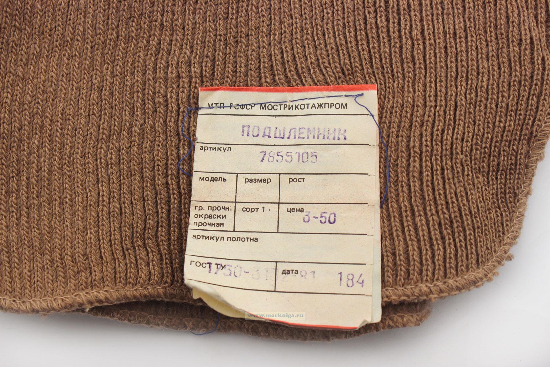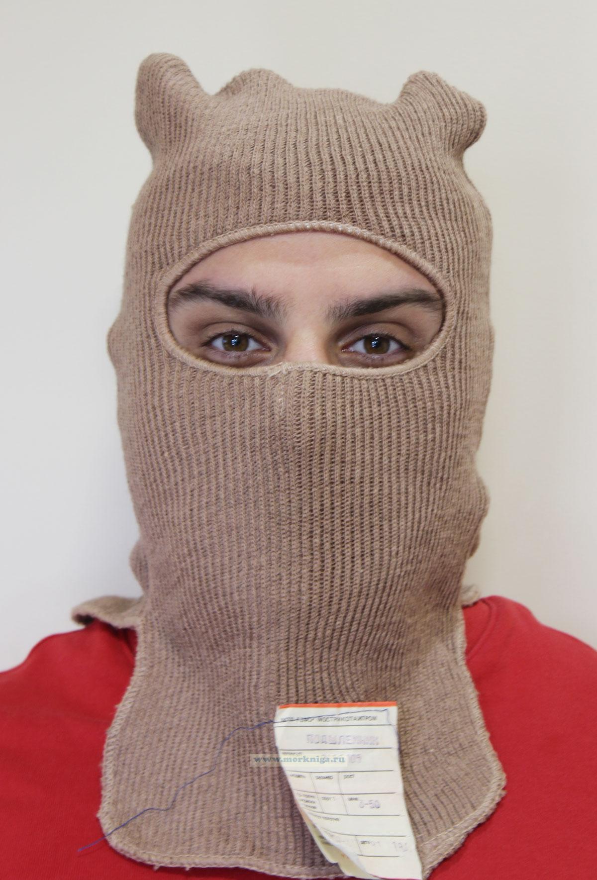 Теплый подшлемник полностью покрывает голову, предусмотрена прорезь для глаз. Использовался в том числе водолазами.