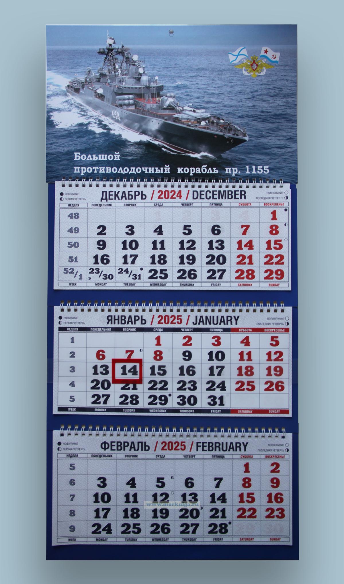 Календарь квартальный "Большой противолодочный корабль пр. 1155" на 2025 год