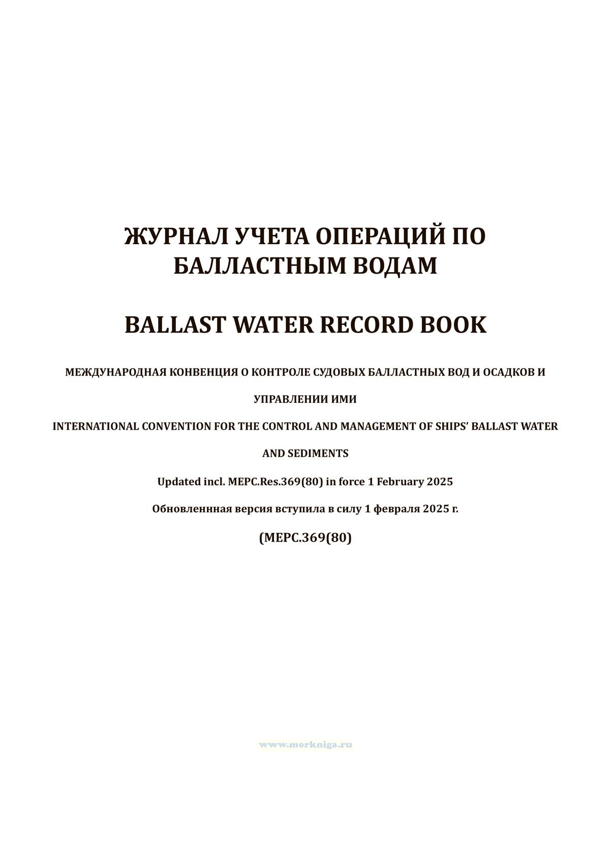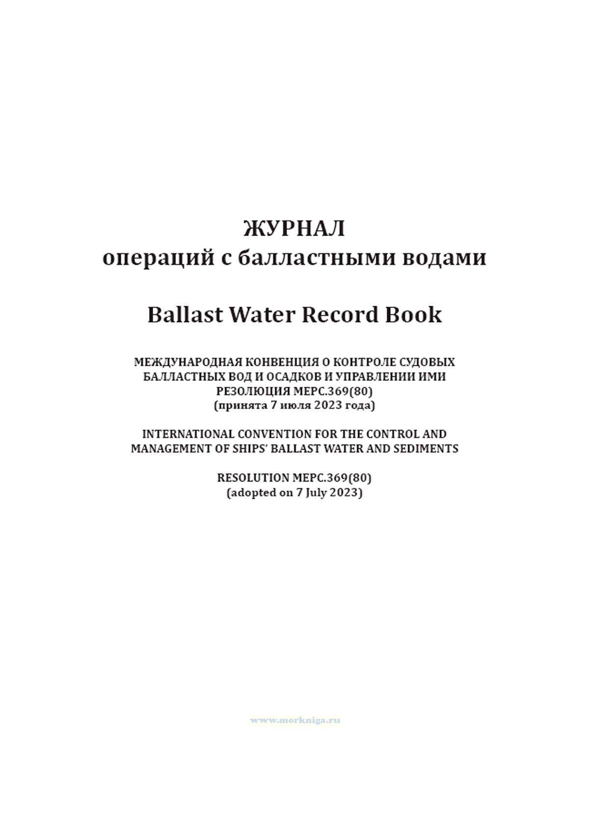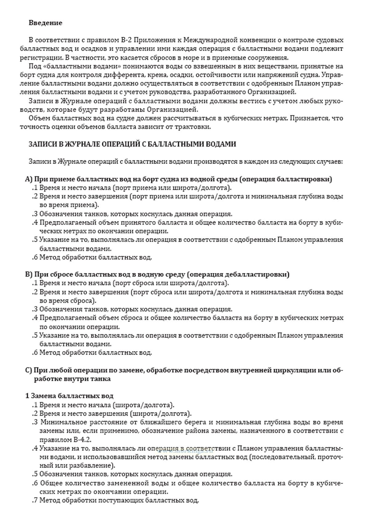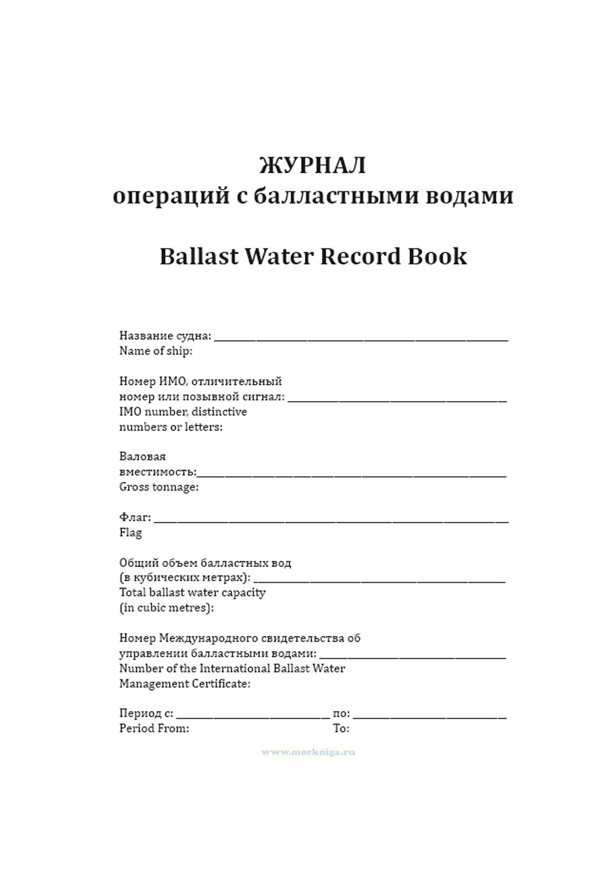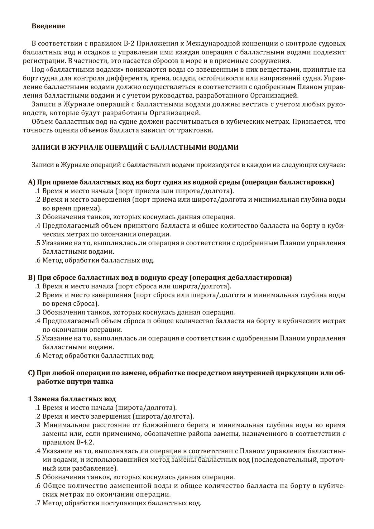 Форма Журнала операций с балластными водами приведена в Резолюции MEPC.369(80) Поправки к Международной конвенции о контроле судовых балластных вод и осадков и управлении ими 2004 года.
