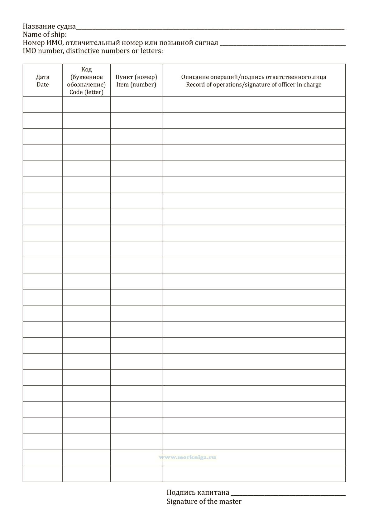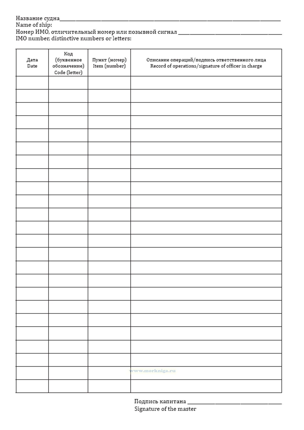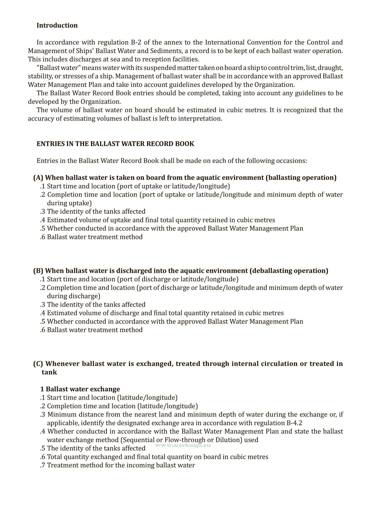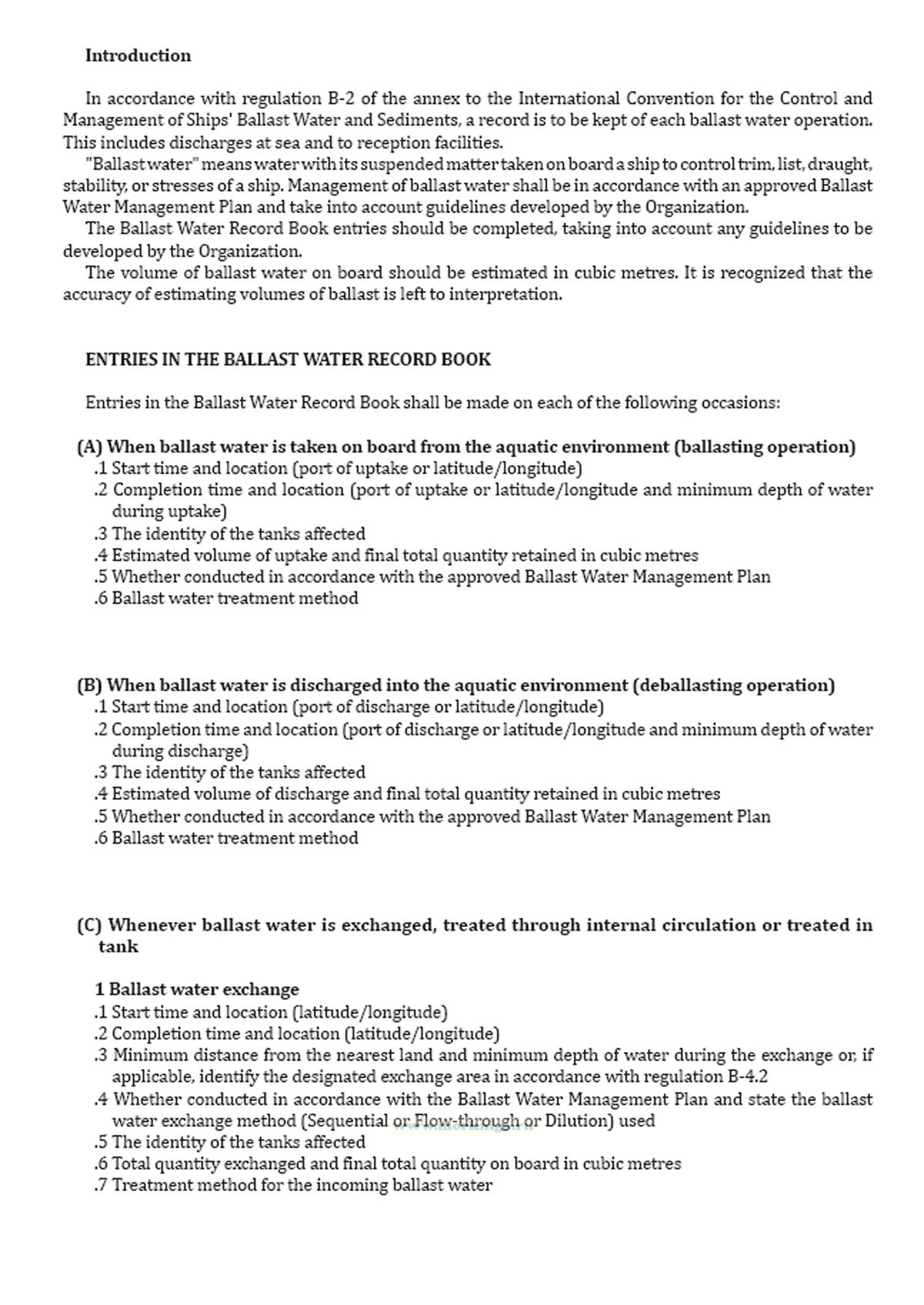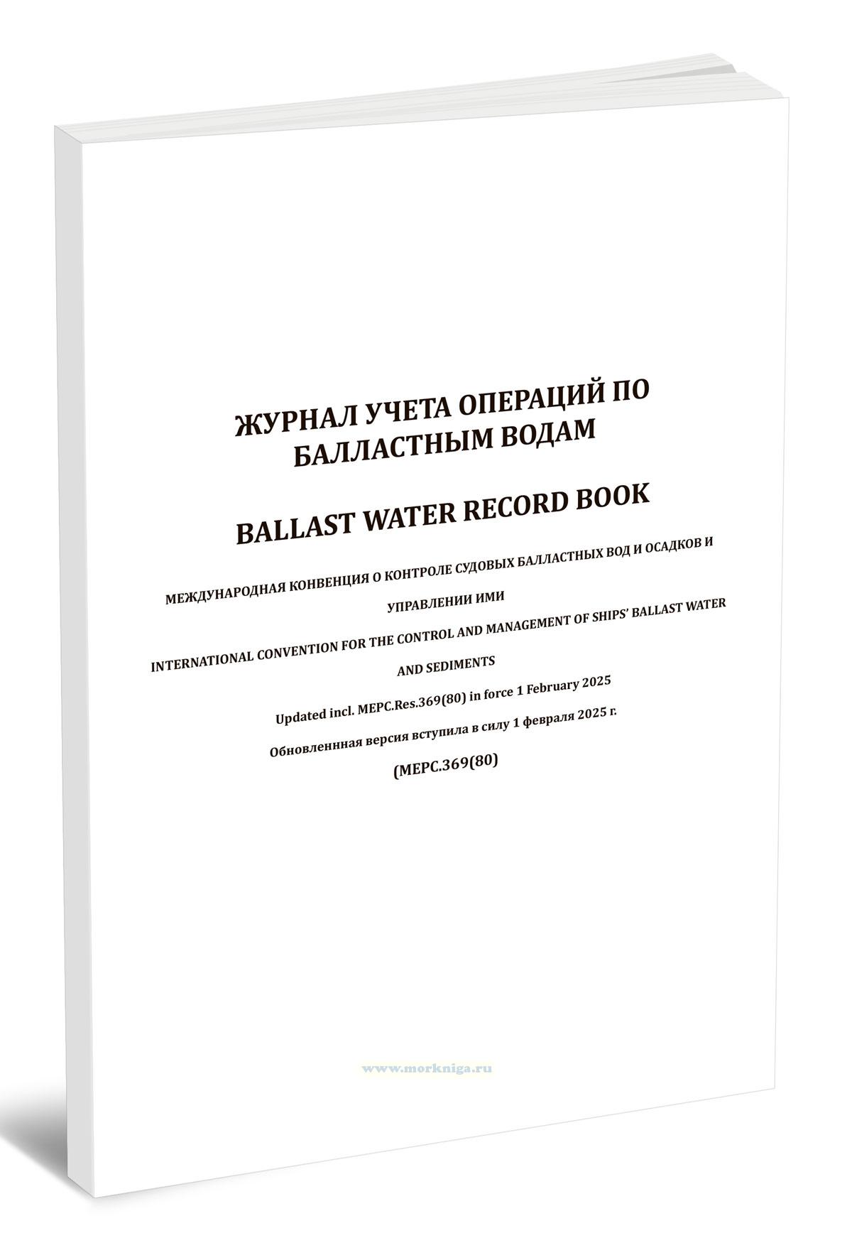 Форма Журнала операций с балластными водами приведена в Резолюции MEPC.369(80) Поправки к Международной конвенции о контроле судовых балластных вод и осадков и управлении ими 2004 года.