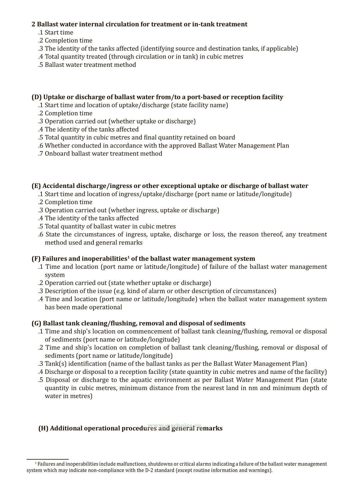 Каждая операция с балластными водами подлежит регистрации. В частности, это касается сбросов в море и в приемные сооружения.