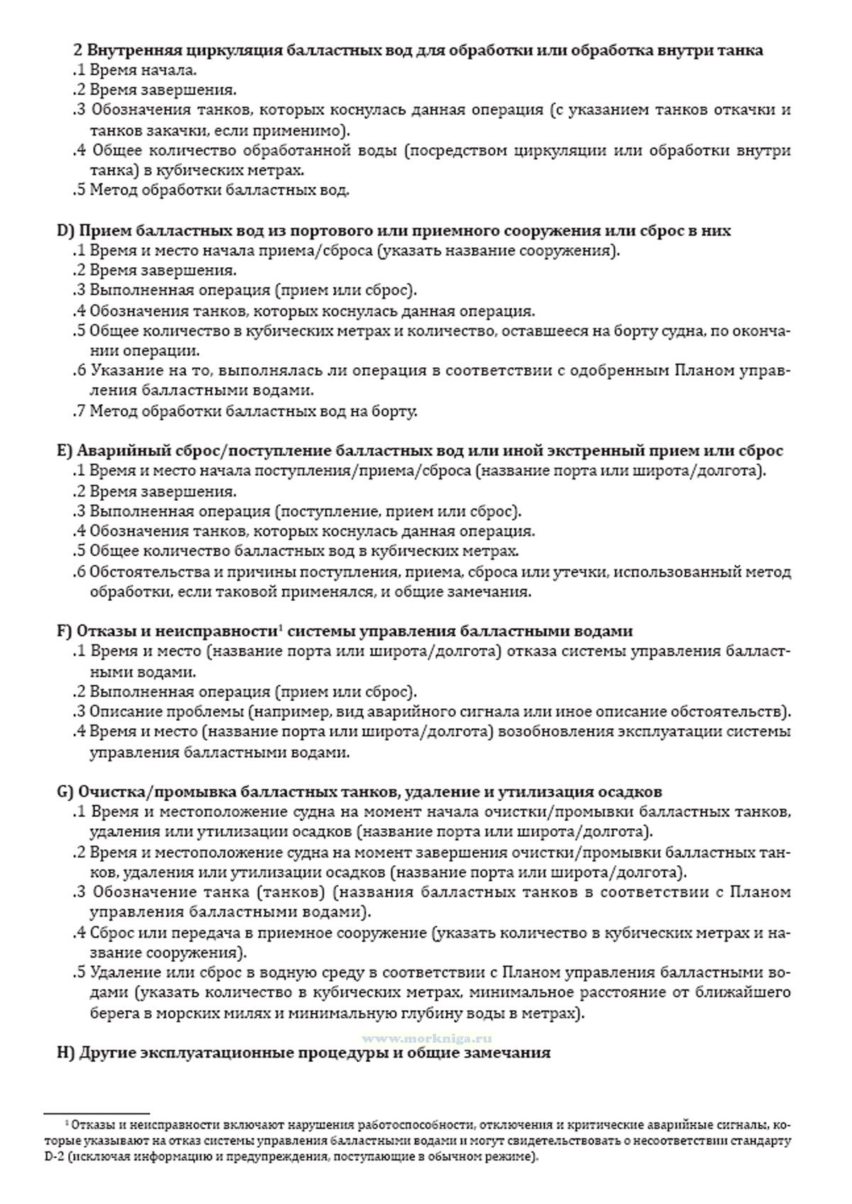 балластными водами должно осуществляться в соответствии с одобренным Планом управления