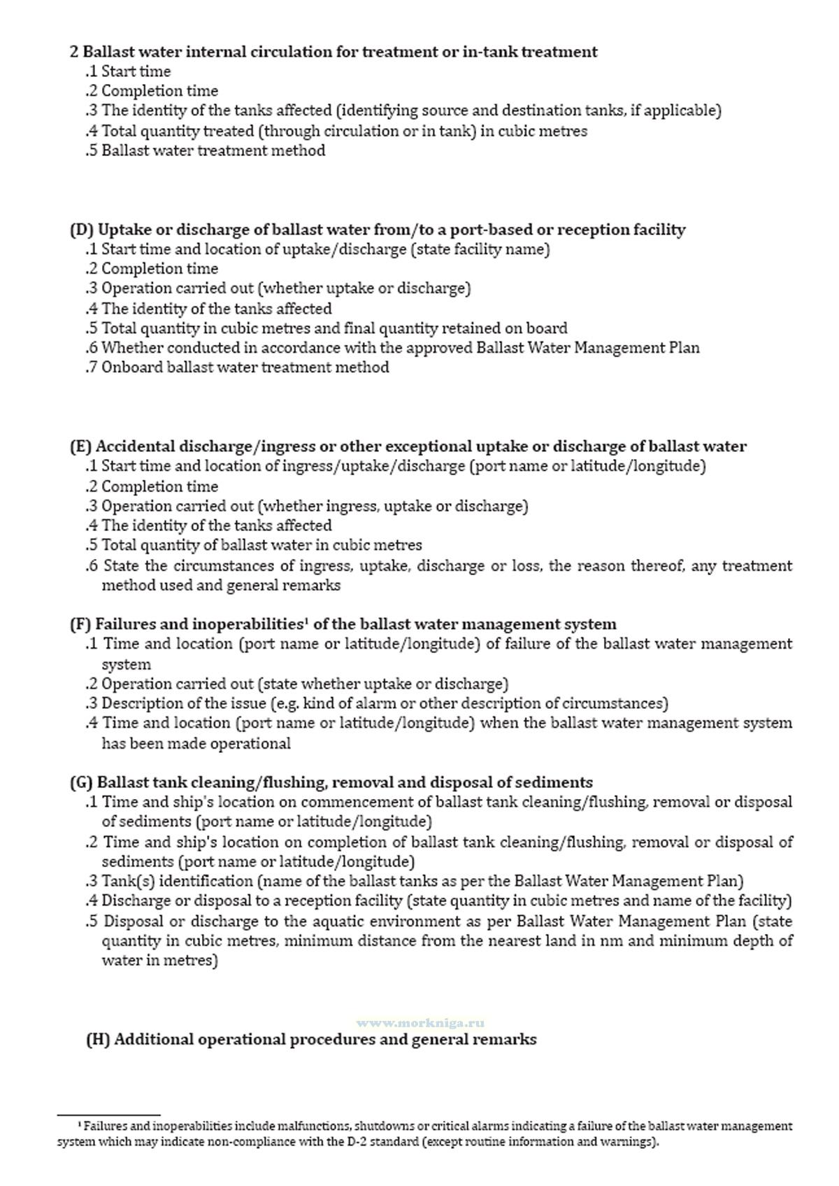 Записи в Журнале операций с балластными водами должны вестись с учетом любых руководств,