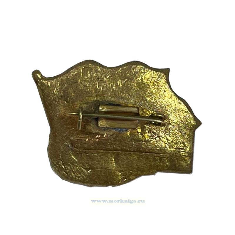 Прямоугольная голубая пластинка, прикрытая сверху развевающимся вправо военно-морским флагом СССР образца 27 мая 1935 г. Правую сторону пластинки ограничивает стоящий наклонно флагшток. По центру размещен стилизованный силуэт крейсера. По нижней кромке пластинки идет красная полоса с золотистой надписью: "за дальний поход". Левый нижний угол пластинки обрамлен лавровой ветвью. Фацет знака, все кромки, буртики и лавровая ветвь имеют золотистый цвет.