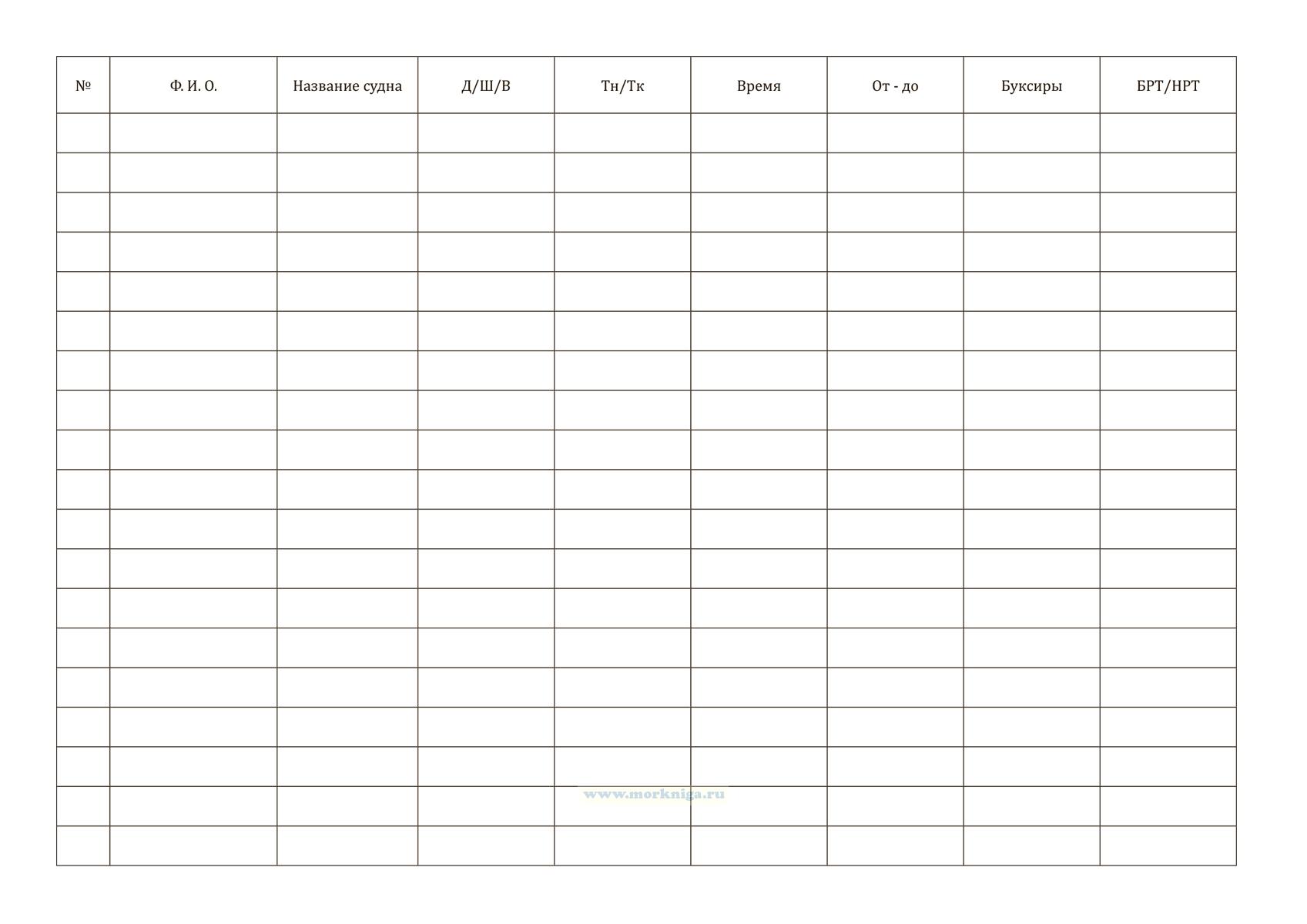 Журнал учета лоцманских квитанций имеет графы: