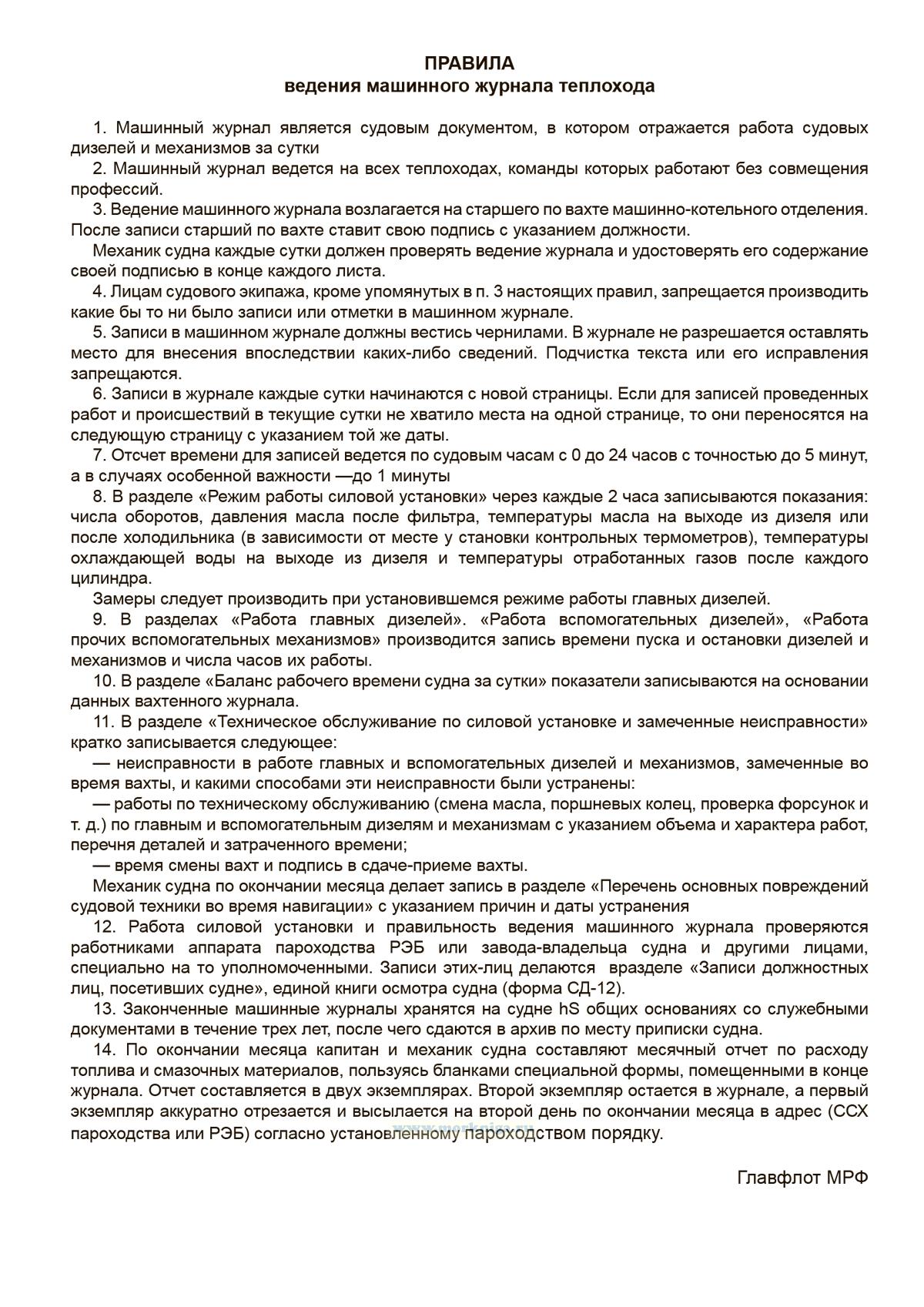 Судовой машинный журнал (Э-/ЭД-1) предназначен для документирования работы дизелей и механизмов судна в течение суток. Он служит важным инструментом для обеспечения безопасности навигации и эффективной эксплуатации судна. Журнал помогает отслеживать производительность силовой установки, выявлять неисправности и планировать техническое обслуживание. Также он используется для анализа расхода топлива и смазочных материалов, что способствует оптимизации затрат. Правильное ведение журнала позволяет обеспечить прозрачность работы судна и соблюдение нормативных требований.