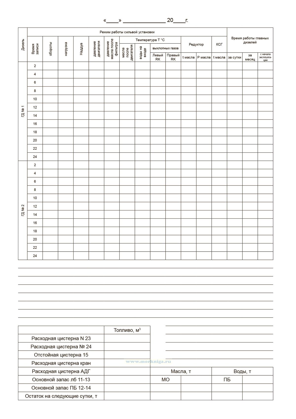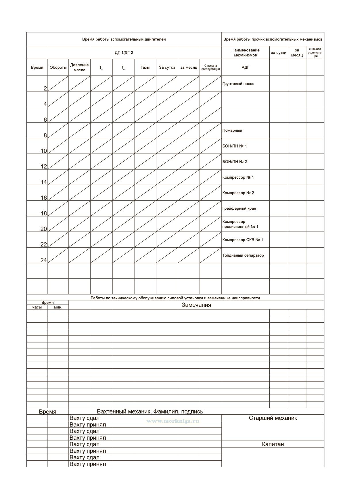 Судовой машинный журнал (Форма Э-/ЭД-1) имеет графы: