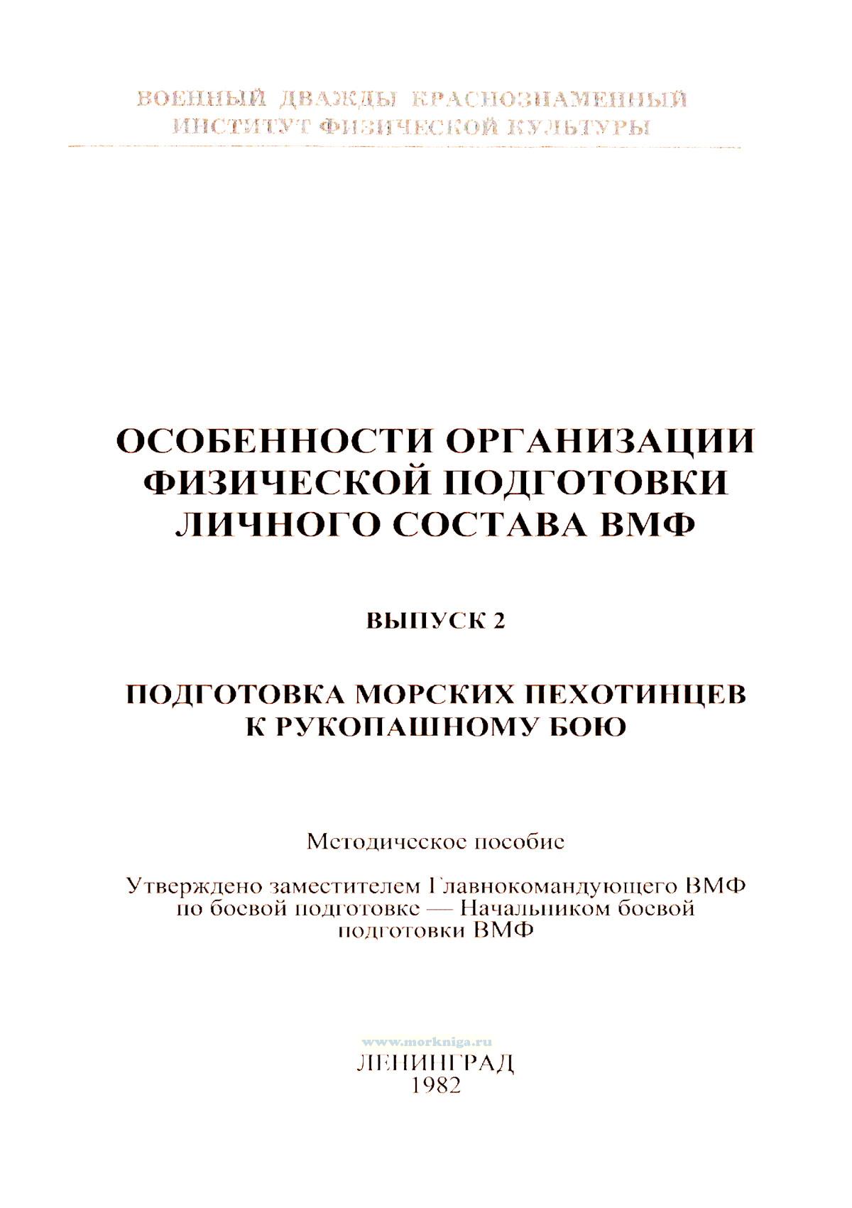 Во втором выпуске методического пособия "Особенности организации физической подготовки личного состава ВМФ" рассматриваются вопросы подготовки морских пехотинцев к рукопашному бою.