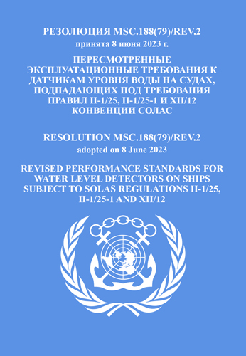 Резолюция MSC.188(79)/Rev.2 "Пересмотренные эксплуатационные требования к датчикам уровня воды на судах, подпадающих под требования правил II-1/25, II-1/25-1 и ХII/12 Конвенции СОЛАС " включена в Сборник № 74 резолюций ИМО/Collection No.74 of IMO Resolutions