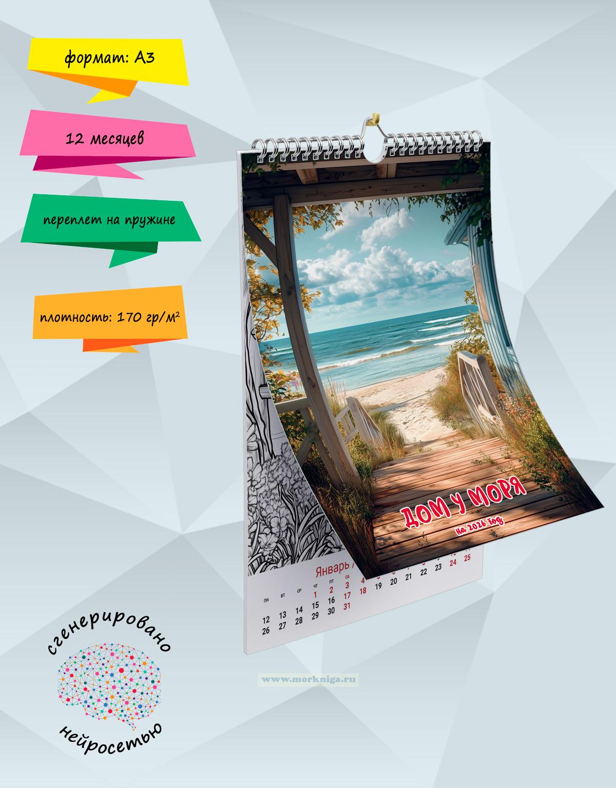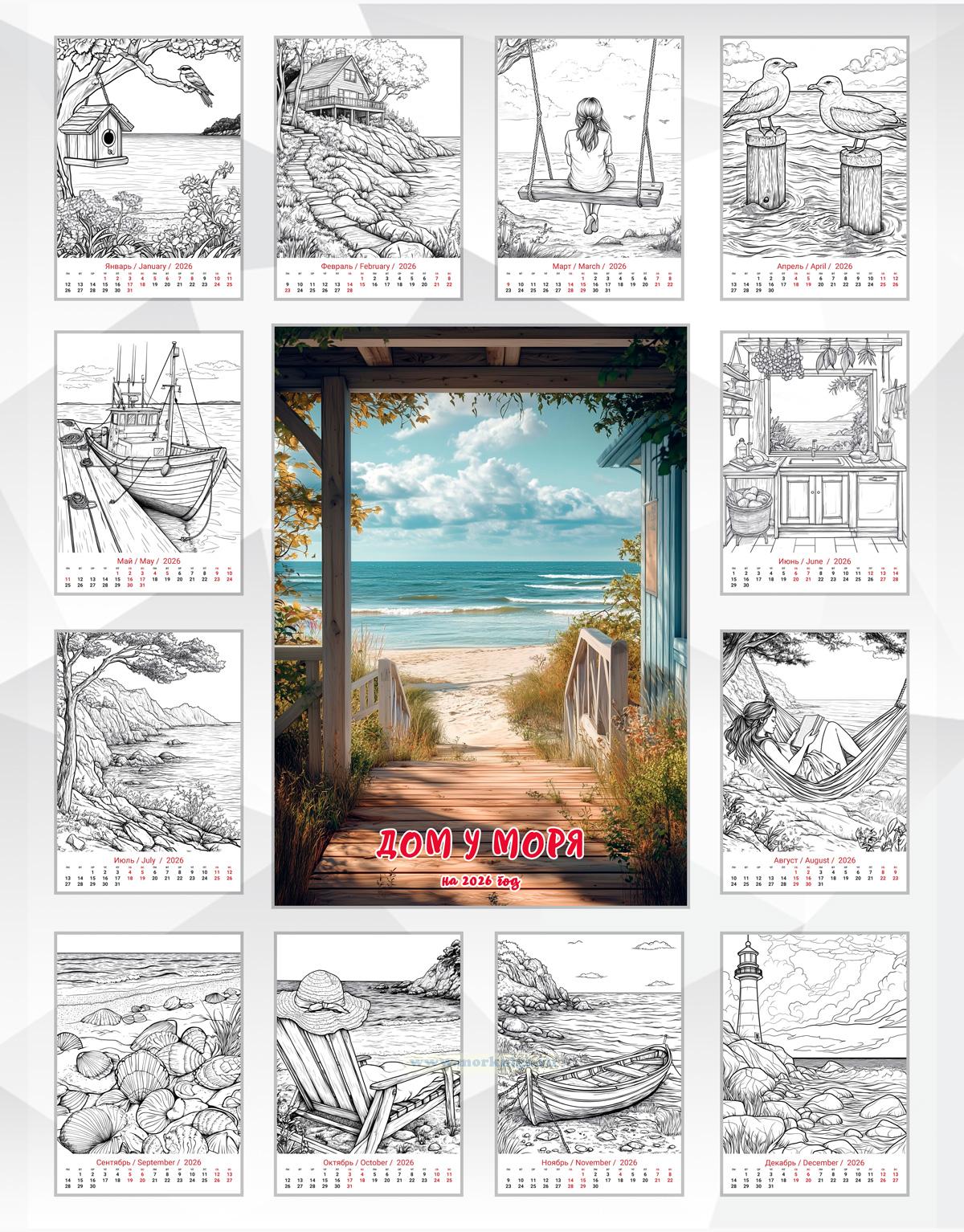 Календарь-раскраска содержит изображения любимых мест в доме у моря, сгенерированные с помощью нейросети. Листы можно раскрасить: карандашами, фломастерами, цветными ручками, красками. Календарь будет отличным подарком для ваших родных, друзей, знакомых, коллег или даже для себя.
