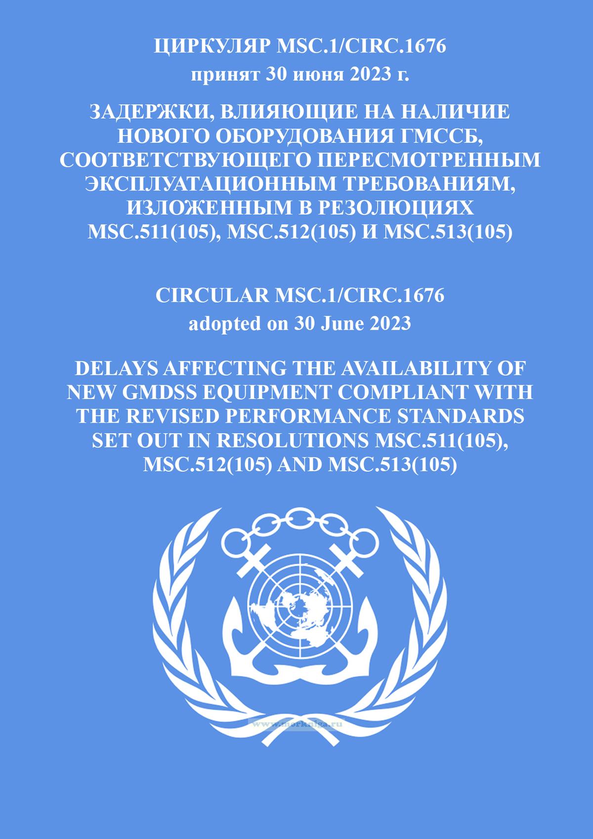 Циркуляр MSC.1/Circ.1676 "Задержки, влияющие на наличие нового оборудования ГМССБ, соответствующего пересмотренным эксплуатационным требованиям, изложенным в резолюциях MSC.511(105) , MSC.512(105) и MSC.513(105) " включен в Сборник № 75 резолюций ИМО/Collection No.75 of IMO Resolutions