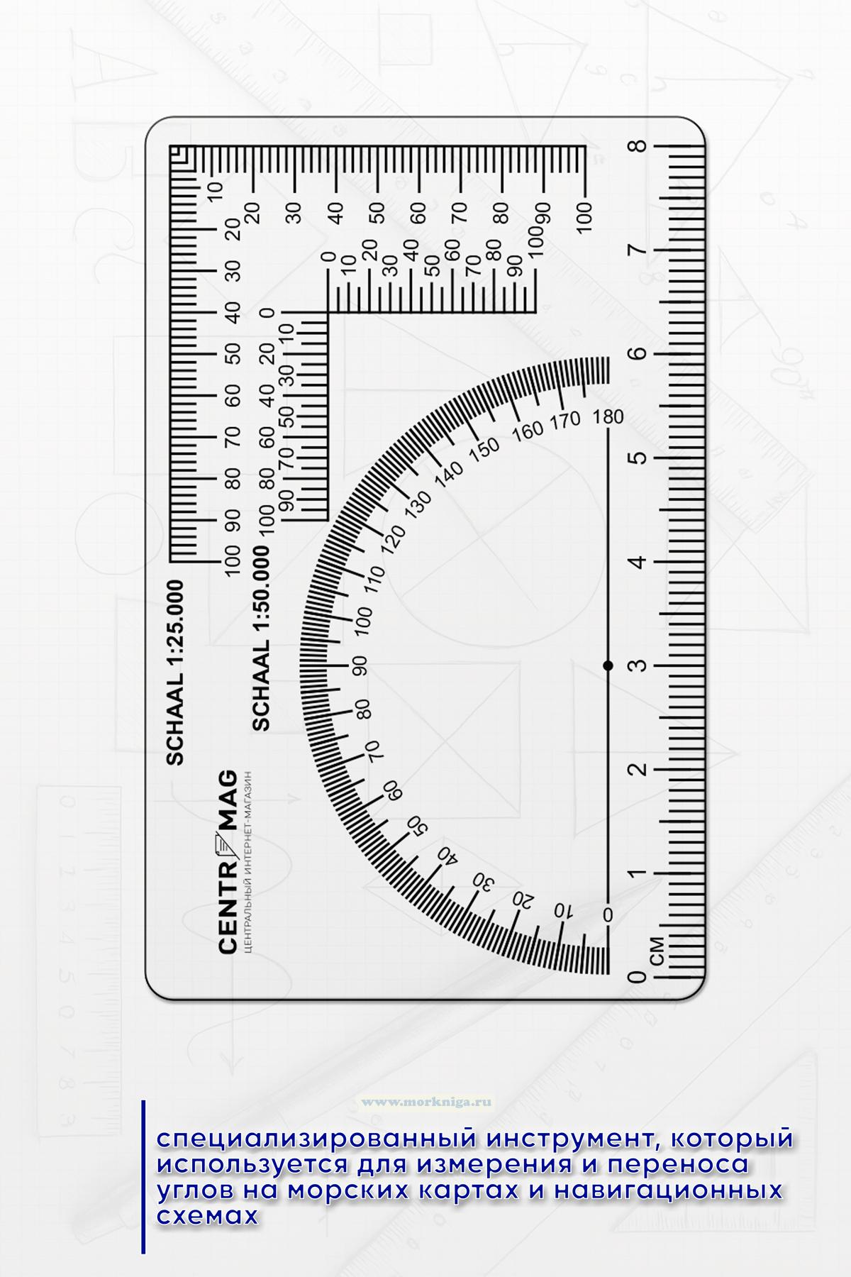 Картографический транспортир — это специализированный инструмент, который используется для измерения и переноса углов на морских картах и навигационных схемах