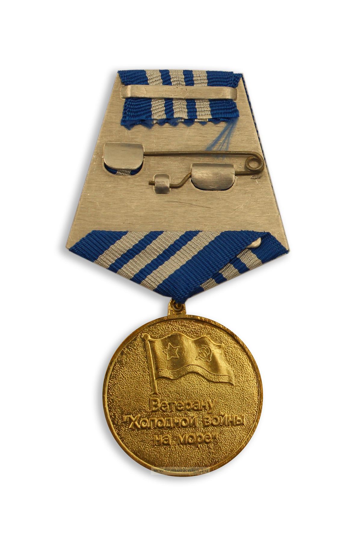 Медаль круглой формы, диаметром 32 мм. На лицевой стороне изображен корпус подводной лодки, выше которого выбито "За Верность и Мужество". Сверху полукругом надпись "10 противоавианосная дивизия ПЛА". Снизу лента с аббревиатурой "ТОФ", обрамленная лавровой и дубовой ветвями. На оборотной стороне флаг ВМФ СССР. Ниже по центру надпись "Ветерану Холодной Войны на море". Медаль при помощи ушка и кольца соединяется с пятиугольной колодкой, обтянутой шелковой муаровой лентой шириной 24 мм.