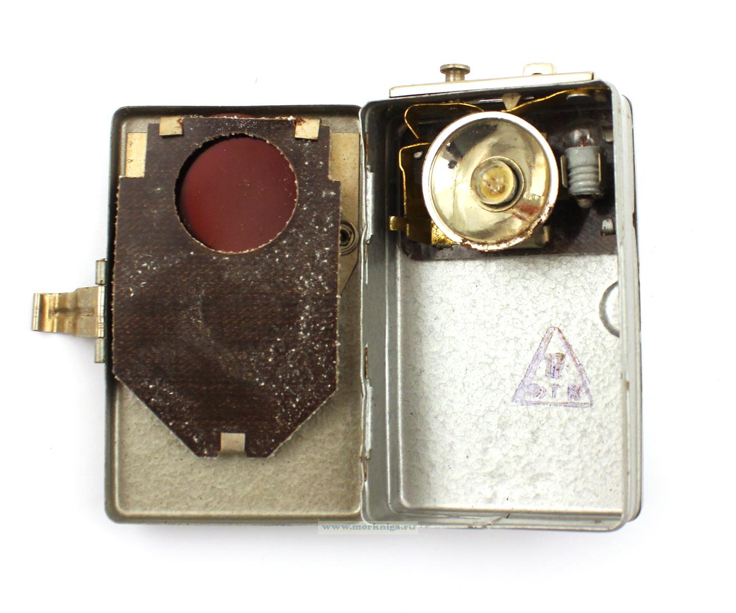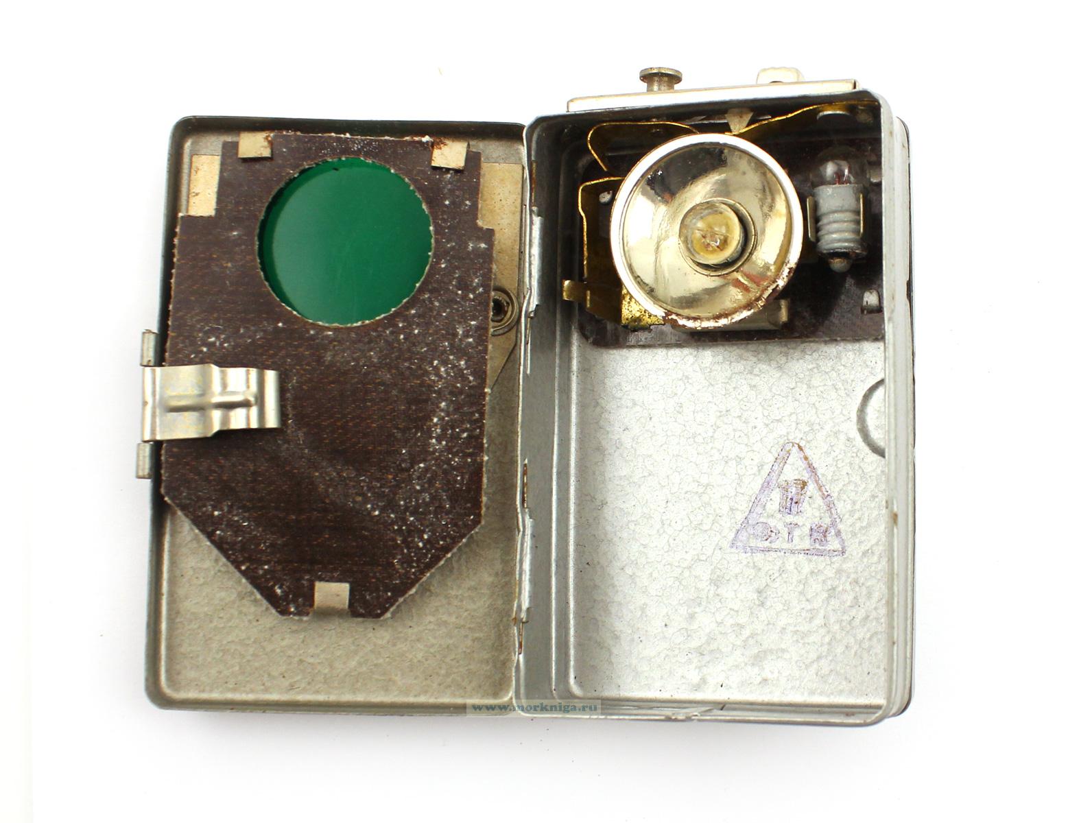 Фонарь сигнальный трехцветный (белый, красный, зеленый) ФКБС. Цвет - серый, корпус выполнен из металла, на задней стороне - ремешок для подвеса.