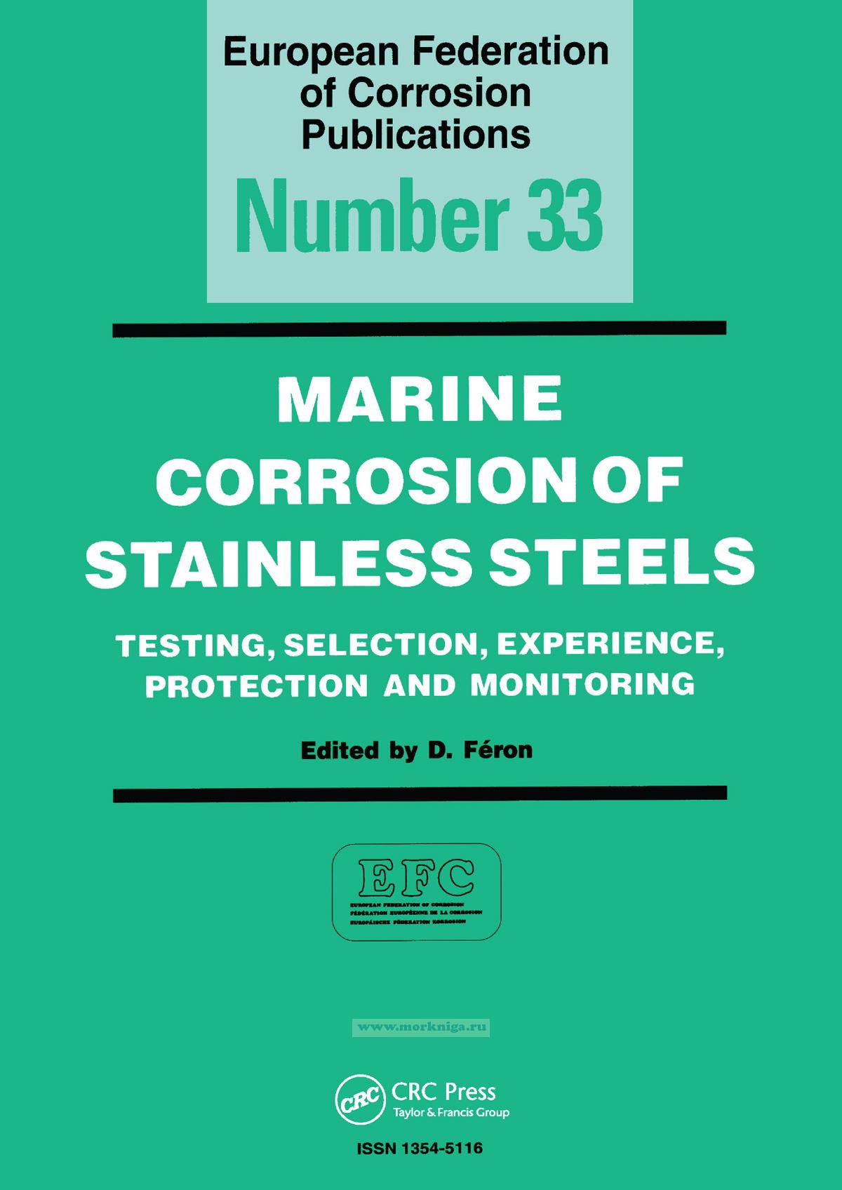 The book consists of several parts, the first of which is devoted to "Marine corrosion of stainless steels" and includes five chapters that review tests conducted in the 1990s to assess the corrosion activity of European marine waters (Atlantic, Baltic, English Channel, Mediterranean Sea and North Sea) in relation to three types of stainless of steel. These studies were conducted within the framework of two joint programs organized by various European laboratories in eight countries. The first chapter is an introduction that describes the procedures, objectives, and participants of one of the programs, while the remaining four chapters are devoted to experimental methods, data on critical temperature corrosion, results from crack corrosion studies, and biofilm data. The remaining 23 chapters of the book cover broader topics related to marine corrosion of stainless steels, including material selection, testing and experience, and protection and monitoring. These sections contain updated reviews and reports that develop the topics discussed in the first part and are confirmed by the authors.