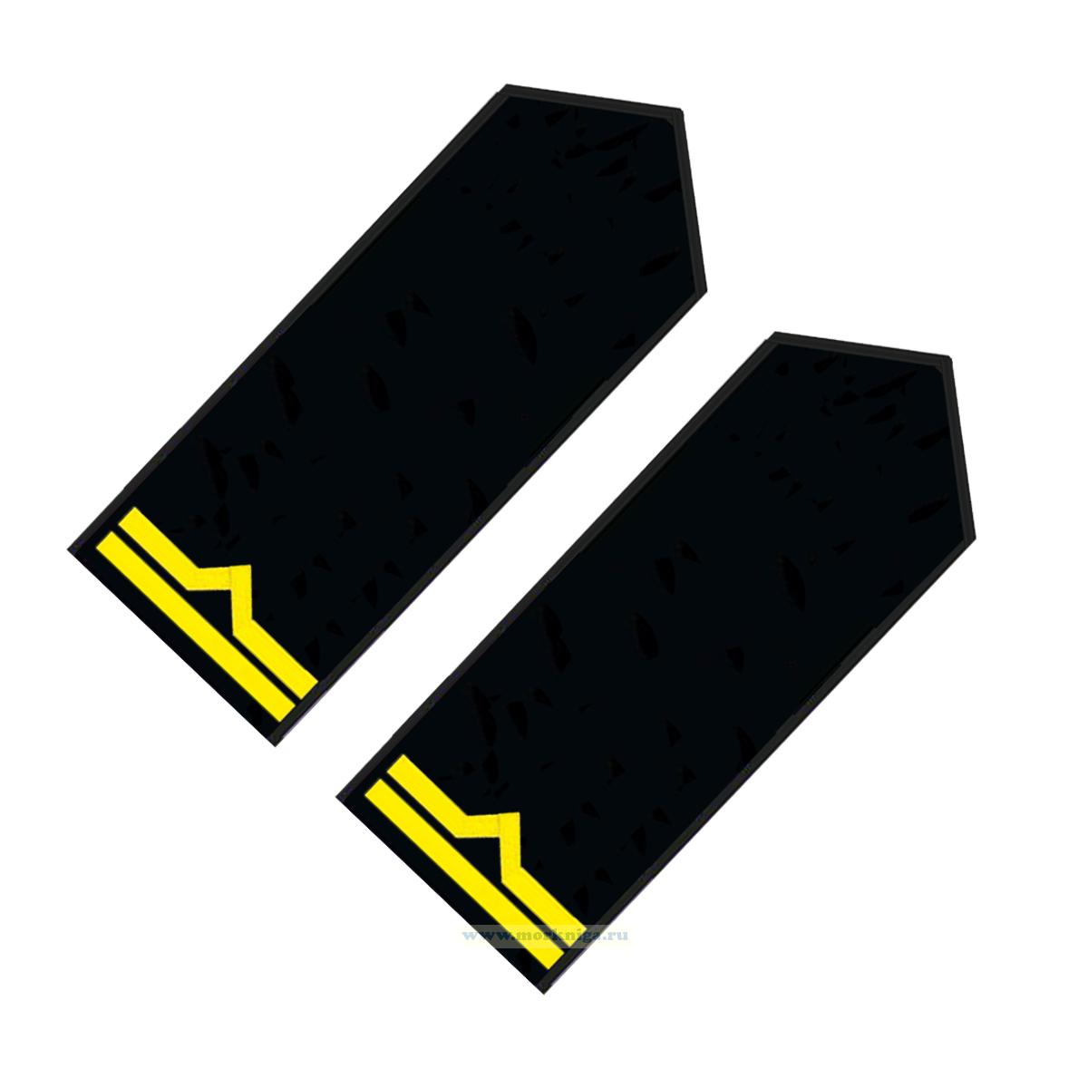 Погоны (речной транспорт), вторая категория (старший матрос, старший моторист, старший электрик, старший проводник), мужские, нашивные, черные, прямоугольные, 14х5 см (1028 руб.)