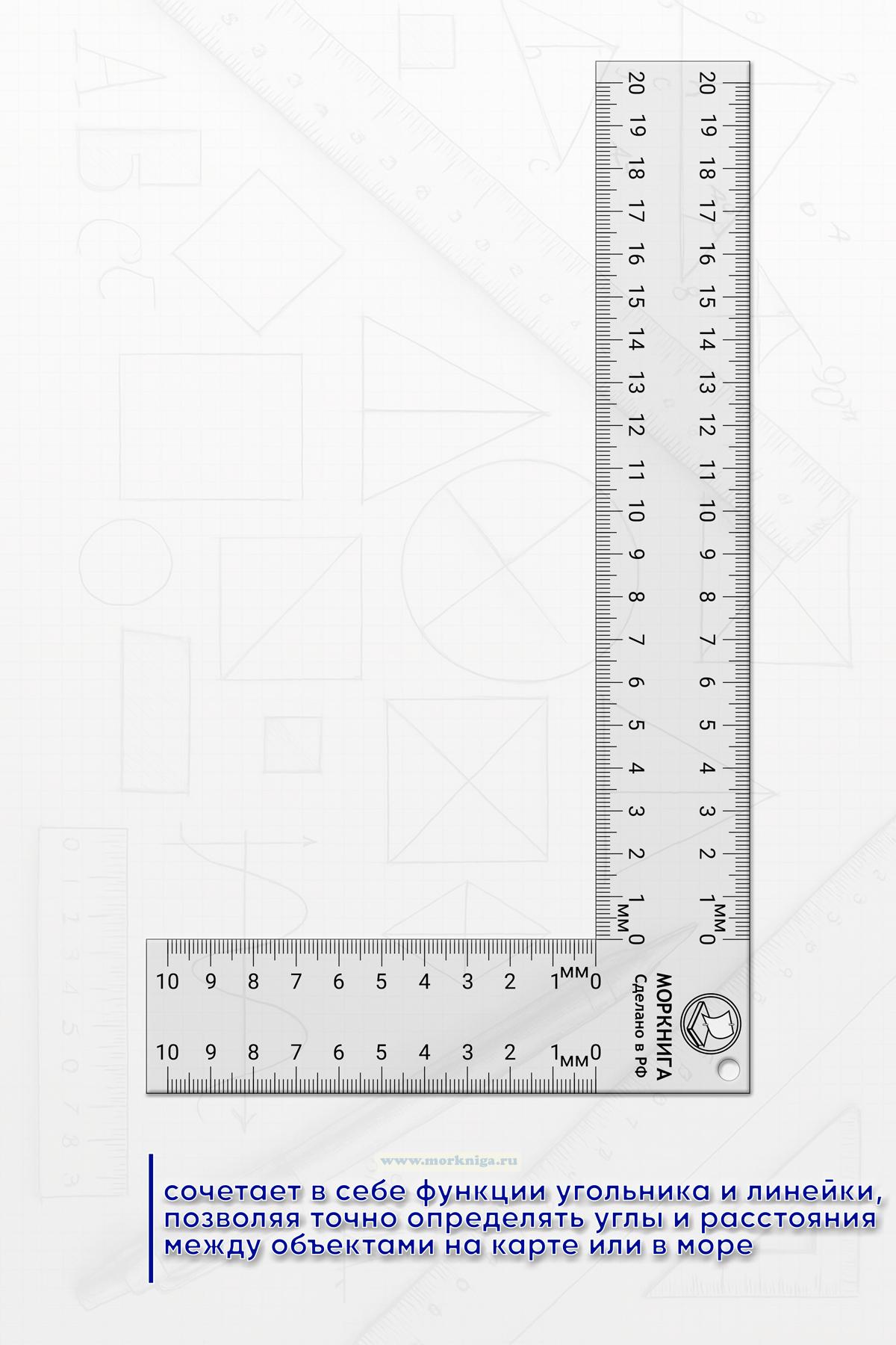 Угольник-линейка — это специальный инструмент, используемый для навигации и измерений. Он сочетает в себе функции угольника и линейки, позволяя точно определять углы и расстояния между объектами на карте или в море. Помогает в расчетах курса, бортовых маневрах и планировании маршрутов