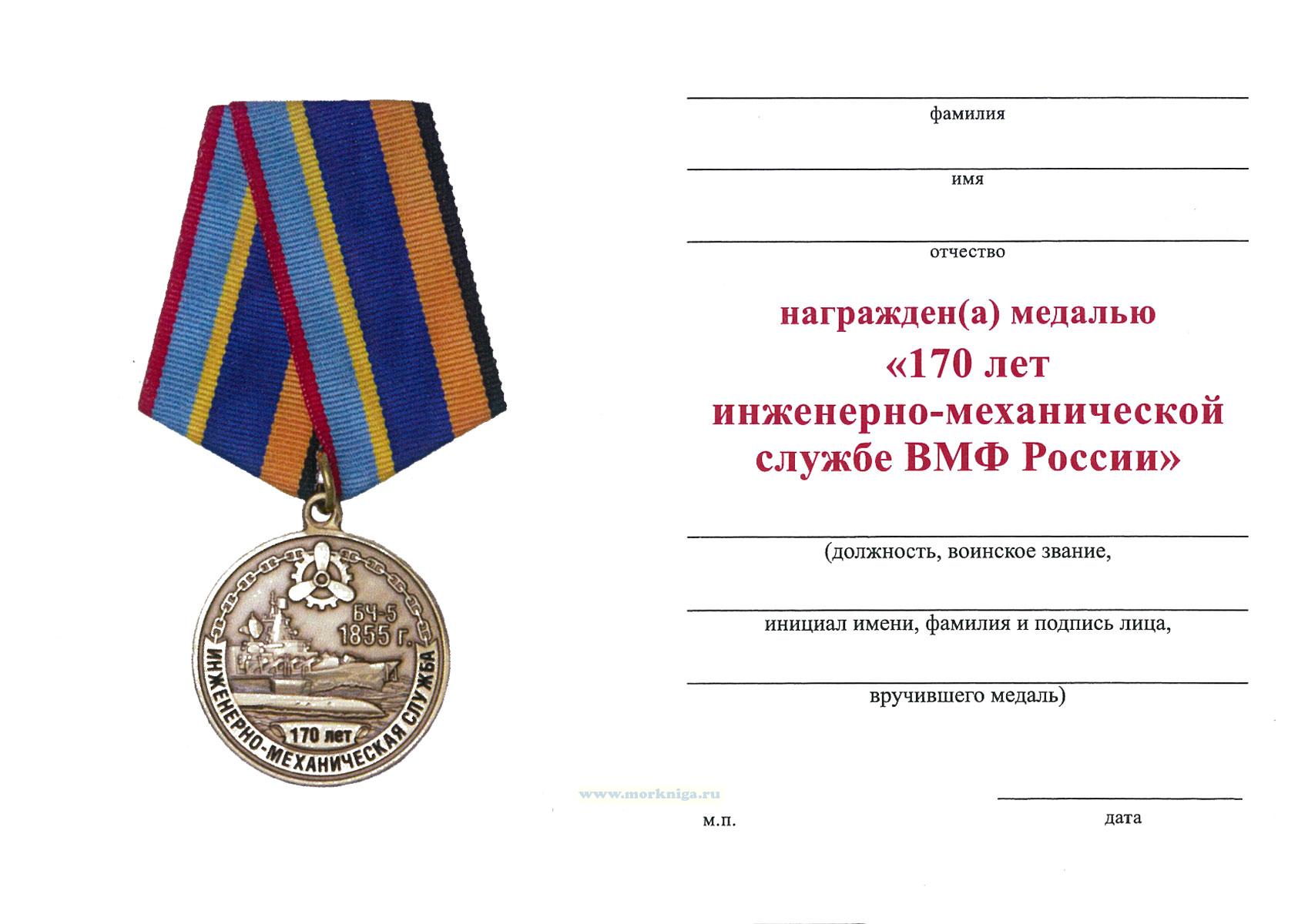 Медаль "170 лет Инженерно-механической службе ВМФ" не является государственной или ведомственной наградой РФ/СССР.