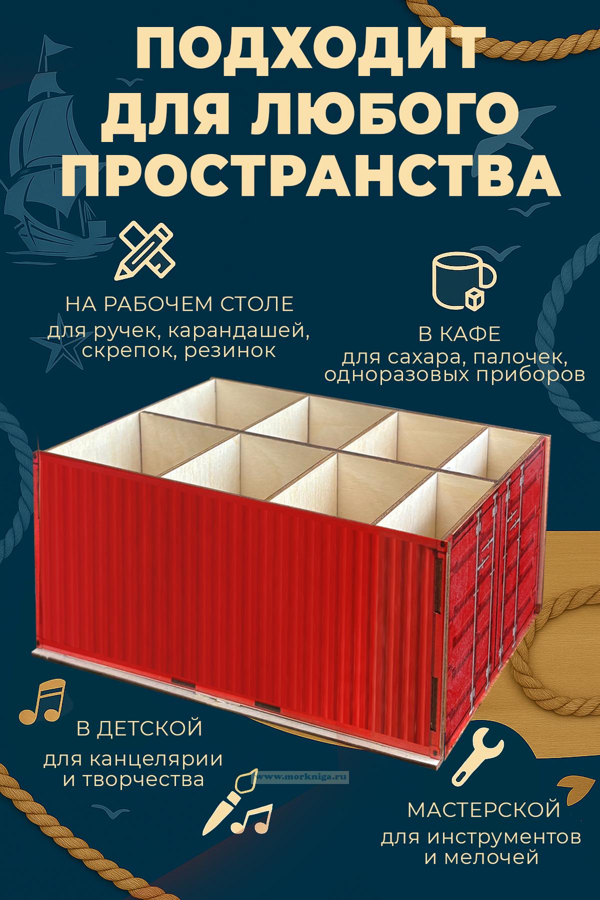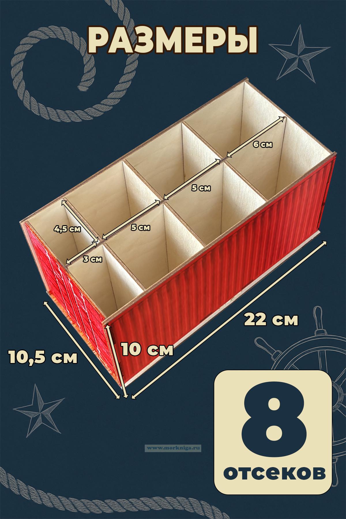 Стильный и функциональный органайзер в виде миниатюрного морского контейнера поможет навести порядок на столе и станет эффектным акцентом интерьера. Подходит для канцелярии и школьных принадлежностей, мелочей и аксессуаров.