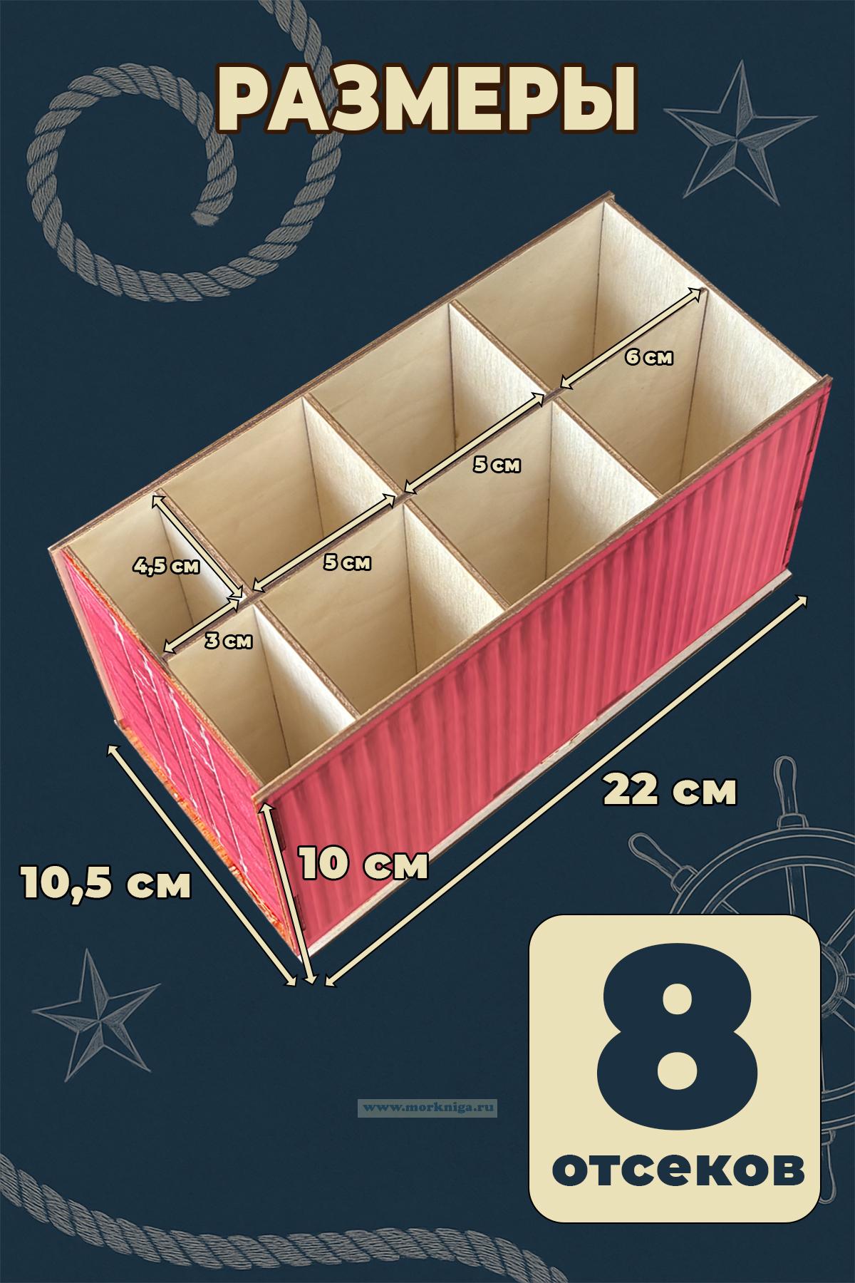 Стильный и функциональный органайзер в виде миниатюрного морского контейнера поможет навести порядок на столе и станет эффектным акцентом интерьера. Подходит для канцелярии и школьных принадлежностей, мелочей и аксессуаров.
