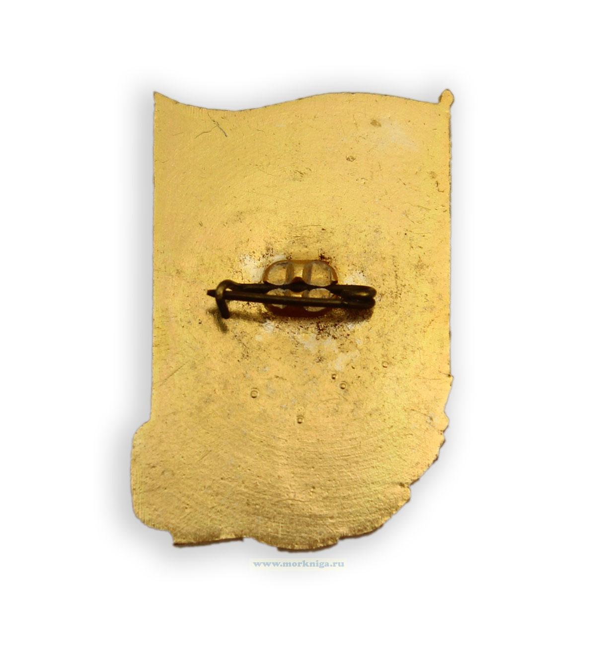 Значок памятный, посвященный 50-летию Судоремонтного завода (СРЗ). На значке изображен флаг Военно-Морского Флота СССР. Центральным элементом является изображение военно-морского корабля, символизирующего профиль деятельности завода. Справа расположен стилизованный кран, подчеркивающий судоремонтное и судостроительное производство. Вертикально размещена аббревиатура "СРЗ". В нижней части значка крупная цифра "50", обозначающая юбилейный год. Декоративным элементом служит лавровый венок, символизирующий заслуги и почет работников завода.