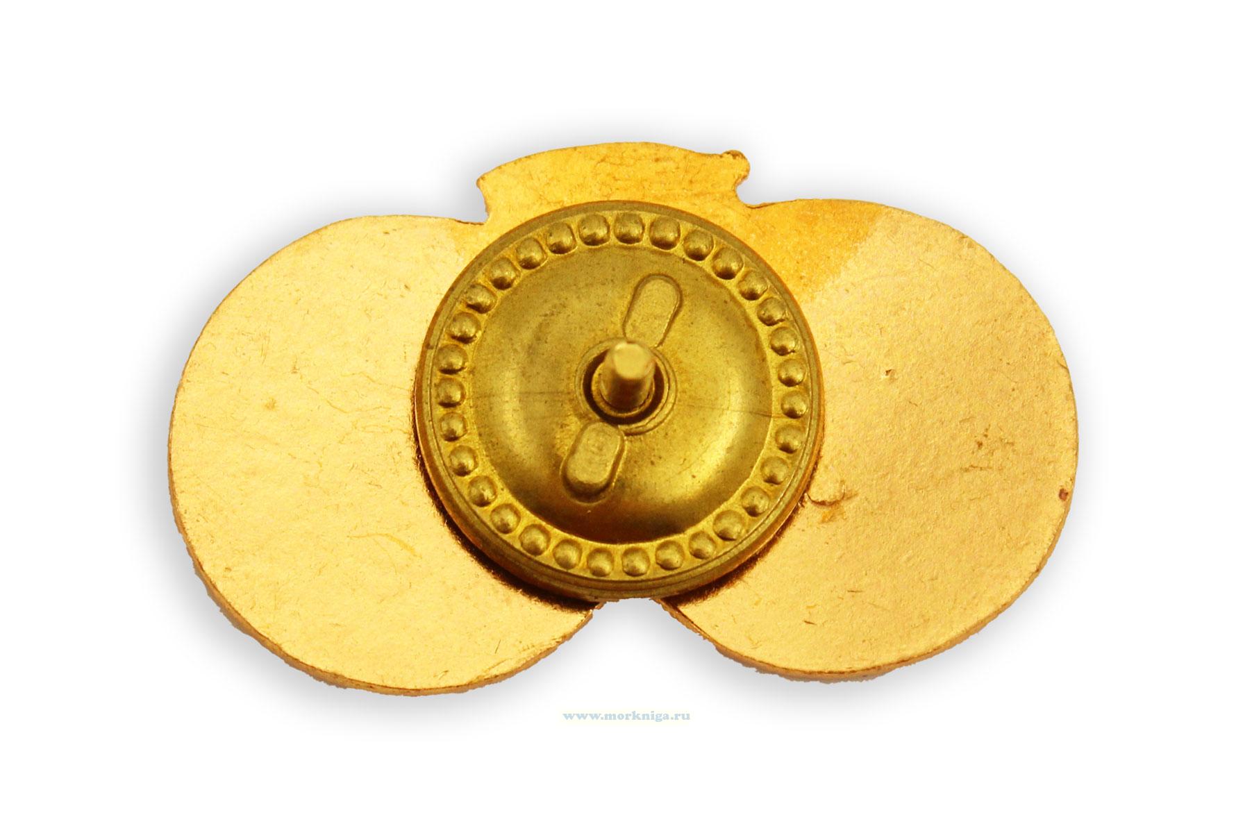 По центру знака изображение корпуса подводной лодки на фоне двух полушарий, сверху по центру флаг ВМФ СССР, снизу двумя полукругами надпись " ЧЕЛЯБИНСКИЙ КОМСОМОЛЕЦ".