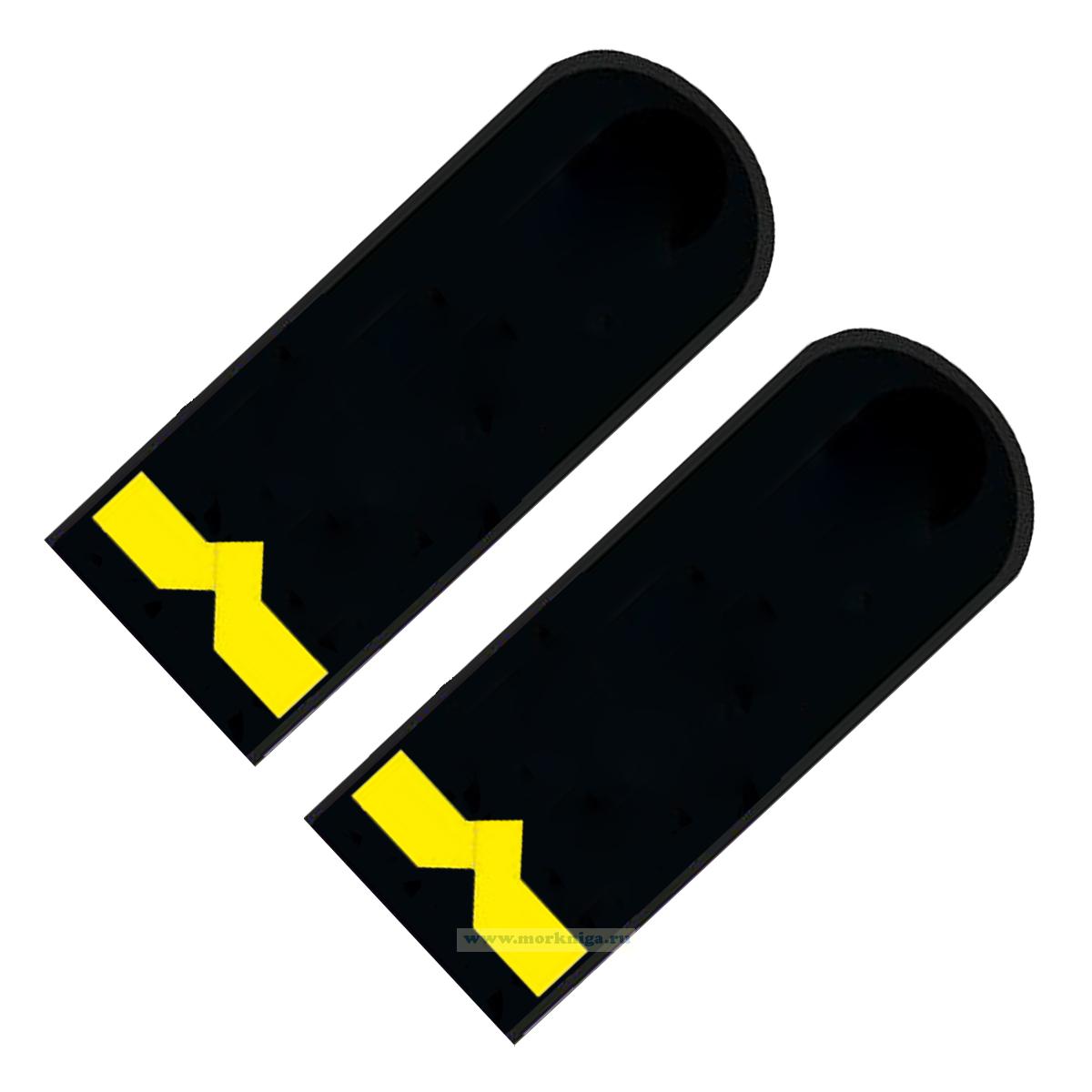 Погоны (речной транспорт), пятая категория (3-й штурман, 3-й помощник механика на судах ниже 750 л.с.), женские, съемные, черные, прямоугольные, 12х5 см (1166 руб.)