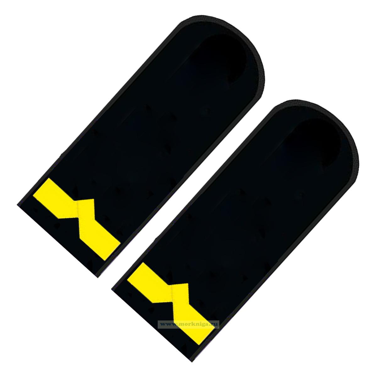 Погоны (речной транспорт), пятая категория (3-й штурман, 3-й помощник механика на судах ниже 750 л.с.), мужские, съемные, черные, прямоугольные, 14х5 см (1166 руб.)