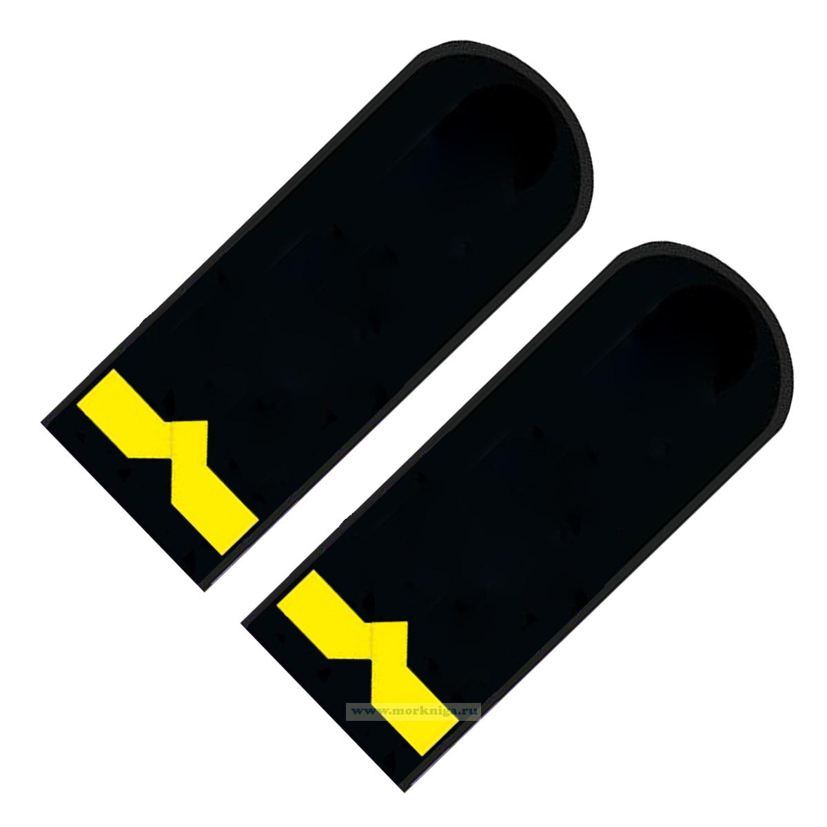 Погоны (речной транспорт), пятая категория (3-й штурман, 3-й помощник механика на судах ниже 750 л.с.), мужские, нашивные, черные, прямоугольные, 14х5 см (1166 руб.)