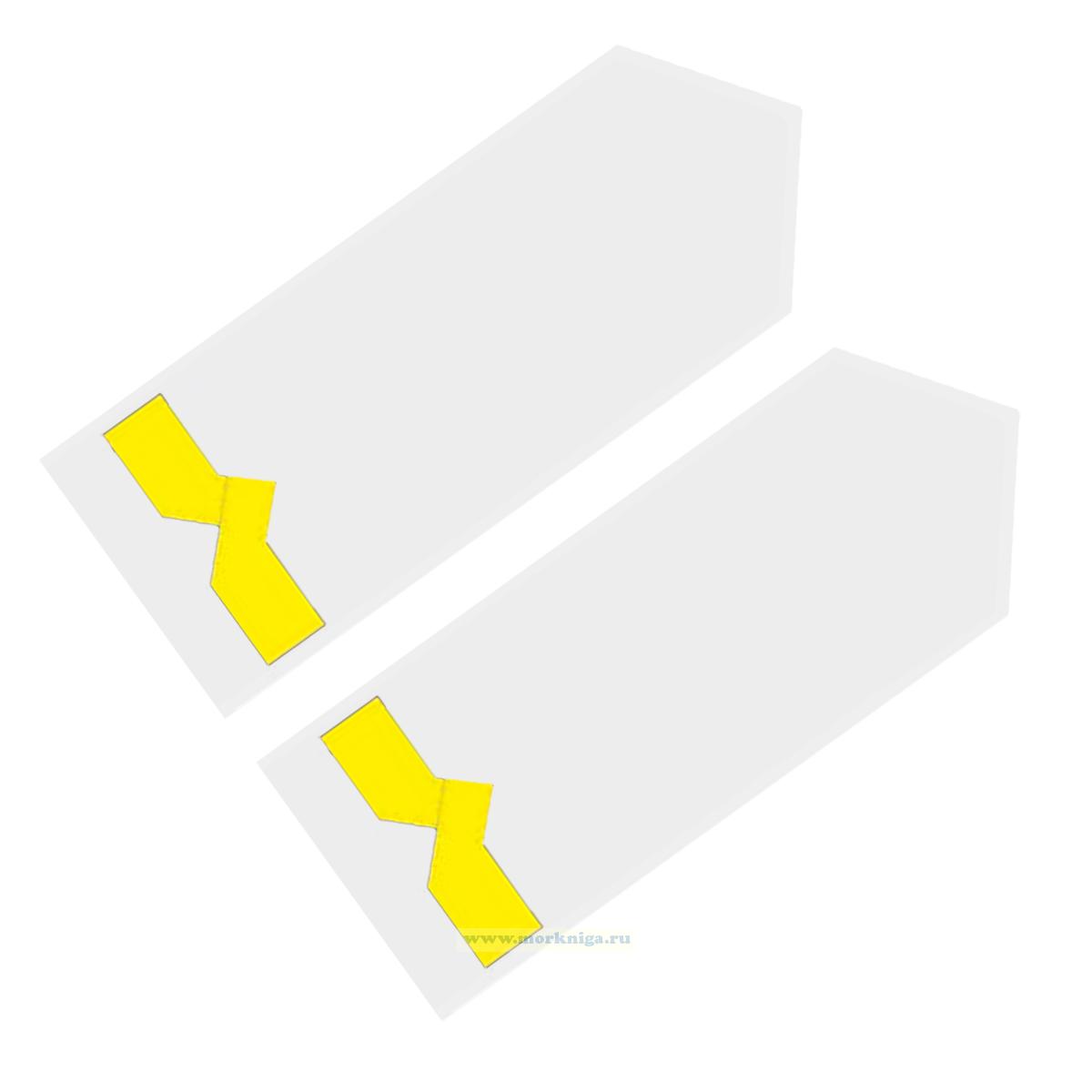 Погоны (речной транспорт), пятая категория (3-й штурман, 3-й помощник механика на судах ниже 750 л.с.), мужские, нашивные, белые, прямоугольные, 14х5 см (1166 руб.)